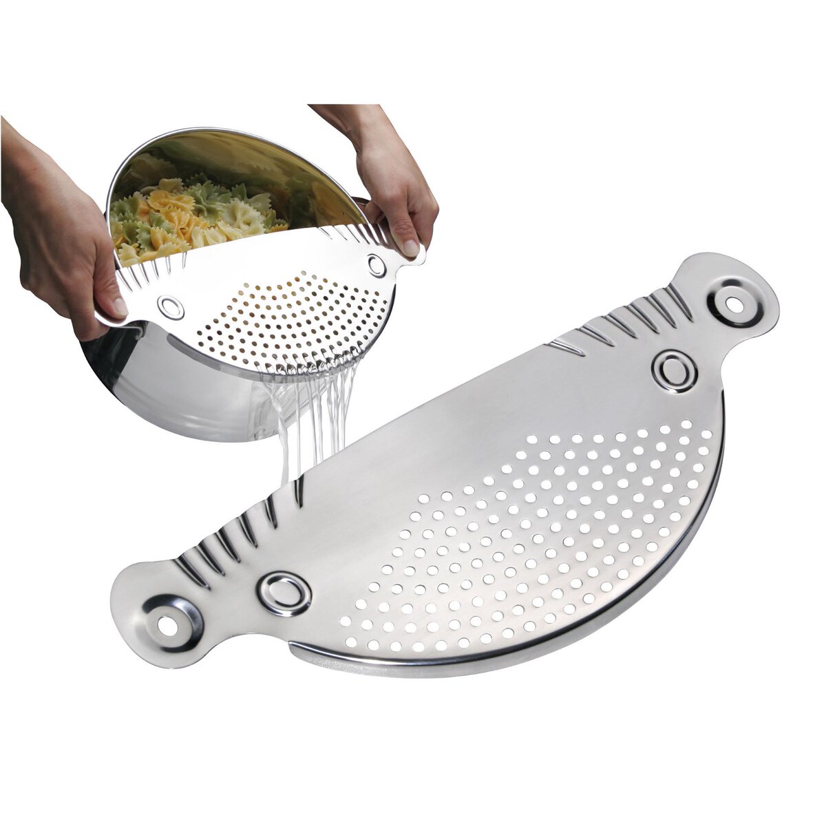 Edelstahl, rostfrei. Extra groß für Töpfe bis Ø 26 cm. Mit Arretierungsrillen zum besseren Halt für Töpfe bis zu Ø 26,0 cm, beidseitig 2 Griffmulden. Extra groß, somit auch z. B. für Kartoffeln geeignet. Spülmaschinengeeignet.