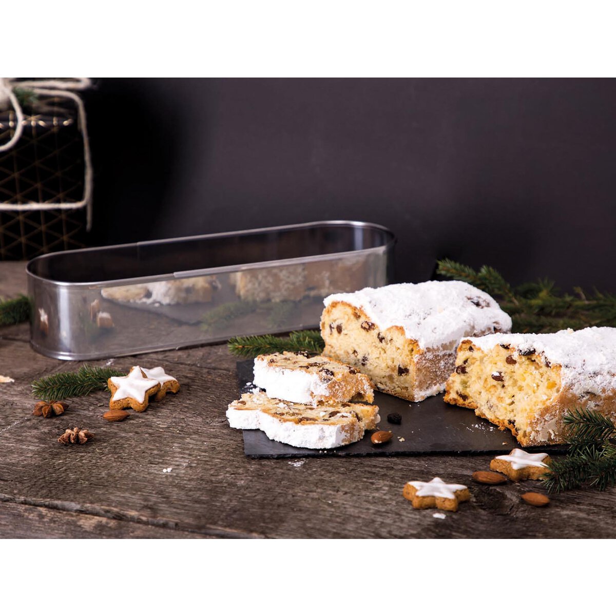 Edelstahl, rostfrei. Höhe: 7,0 cm. Stufenlos ausziehbar für z. B. Brot, Stollen und Kuchen. Spülmaschinengeeignet.