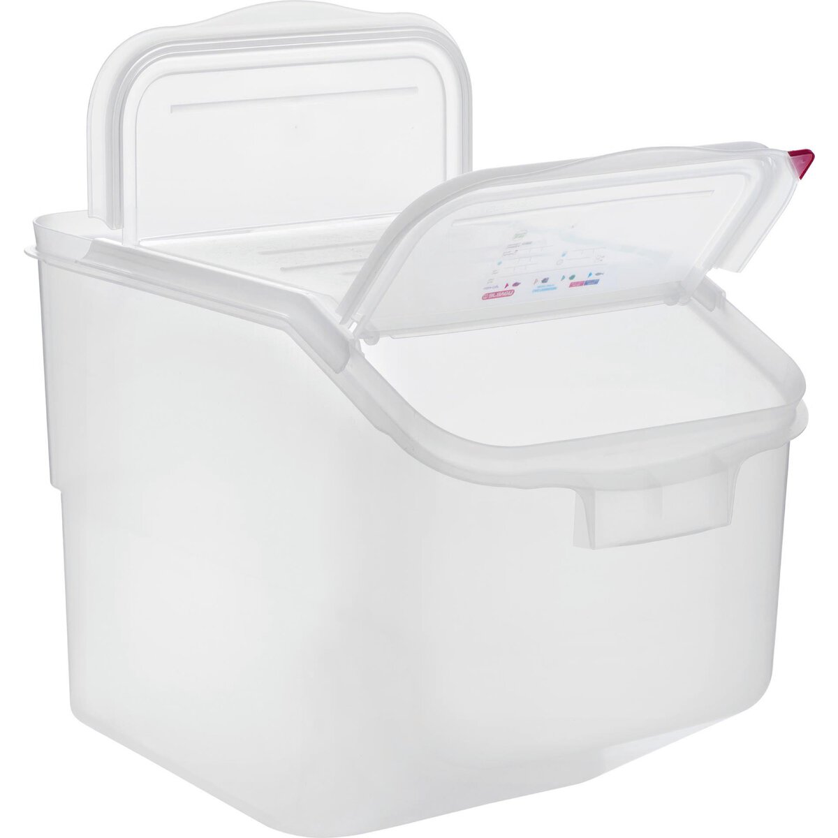 Polypropylen. Integriertes Etikett zum Beschriften, inklusive jeweils 4 verschiedene Farbplättchen zum einfachen Wechseln und Markieren. Mit seitlichen Griffen für einfache Handhabung und Transport. 1/1 GN Behälter ermöglicht FIFO-Handhabung, sowie voneinander unabhängige Befüllung und Entnahme. Abgerundete Kanten. Spülmaschinengeeignet, stapelbar. Doppelte Dichtung für perfekten Schutz.