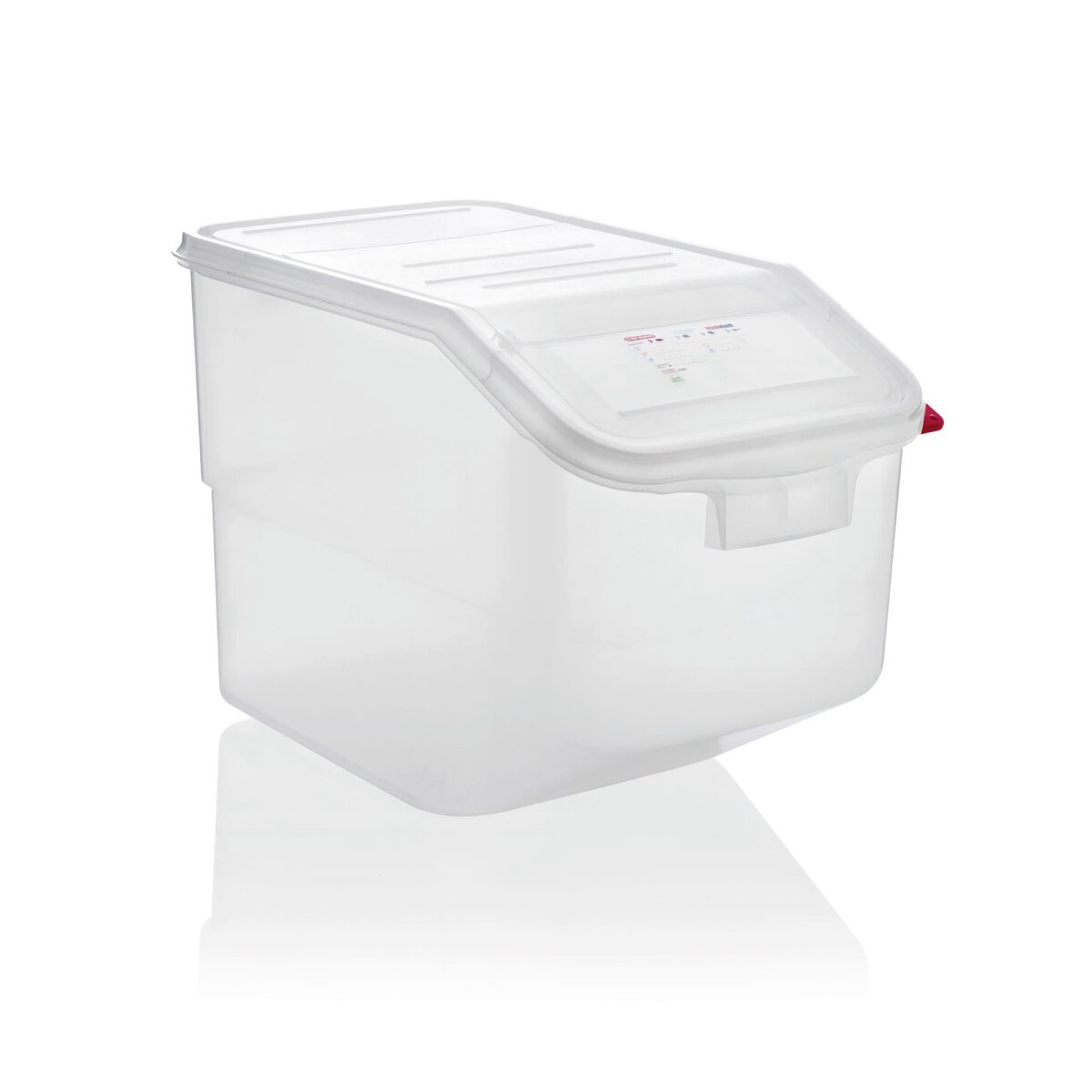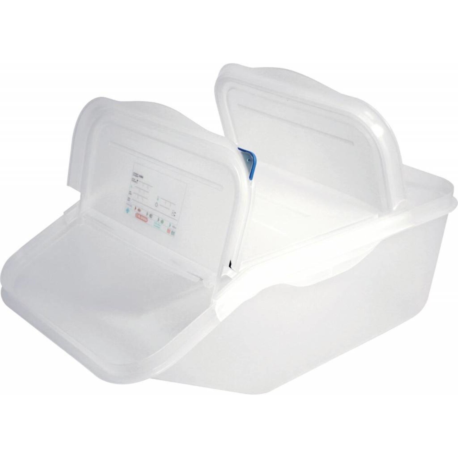 Polypropylen. Integriertes Etikett zum Beschriften, inklusive jeweils 4 verschiedene Farbplättchen zum einfachen Wechseln und Markieren. Mit seitlichen Griffen für einfache Handhabung und Transport. 1/1 GN Behälter ermöglicht FIFO-Handhabung, sowie voneinander unabhängige Befüllung und Entnahme. Abgerundete Kanten. Spülmaschinengeeignet, stapelbar. Doppelte Dichtung für perfekten Schutz.