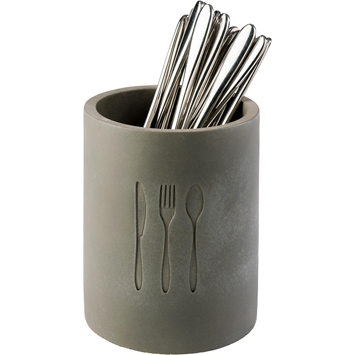 Beton. Mit Abflussloch und Besteck-Logo. Bodeneinlage aus Silikon zum Schonen der Messerspitzen, sowie möbelschonende Unterseite. Ø innen: 9,5 cm. Nicht spülmaschinengeeignet.