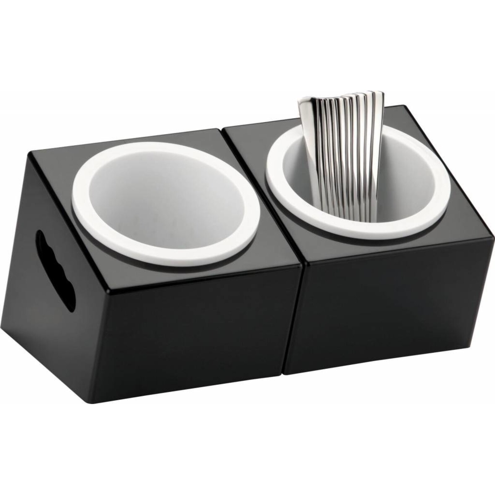 Gestell ABS, schwarz, seitliche Griffmulden, inklusive 1 oder 2 Besteckköcher (Art.-Nr. 40081) Polycarbonat, weiß, herausnehmbar.