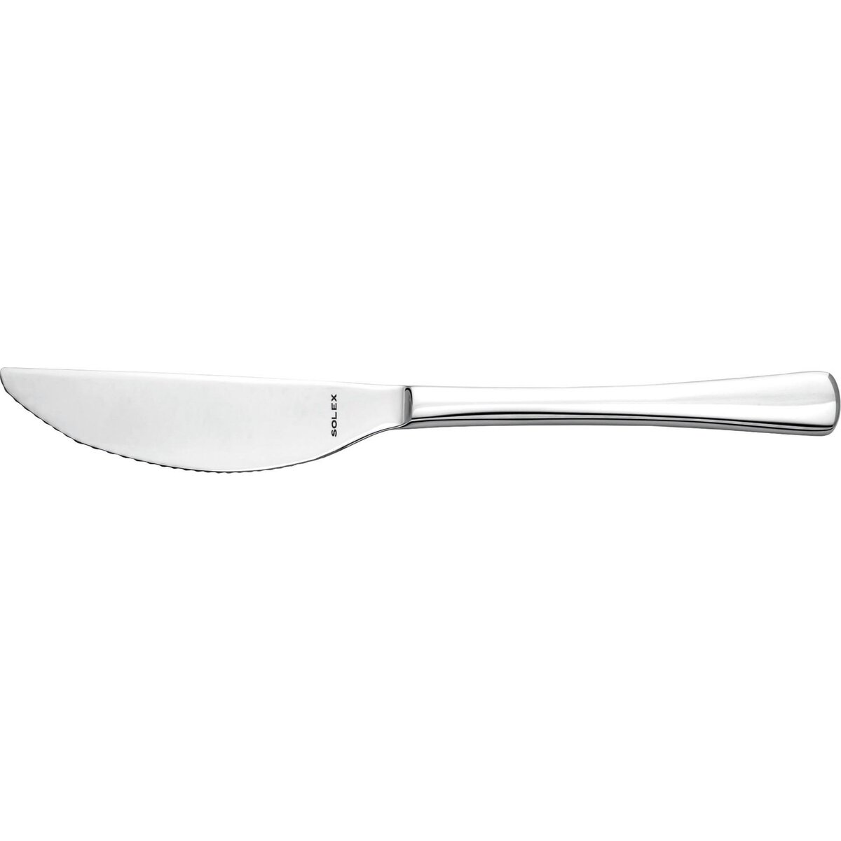 Chrom-Nickel-Stahl 18/10, rostfrei, poliert. Messer mit geschmiedeter Klinge. 3,0 mm stark.