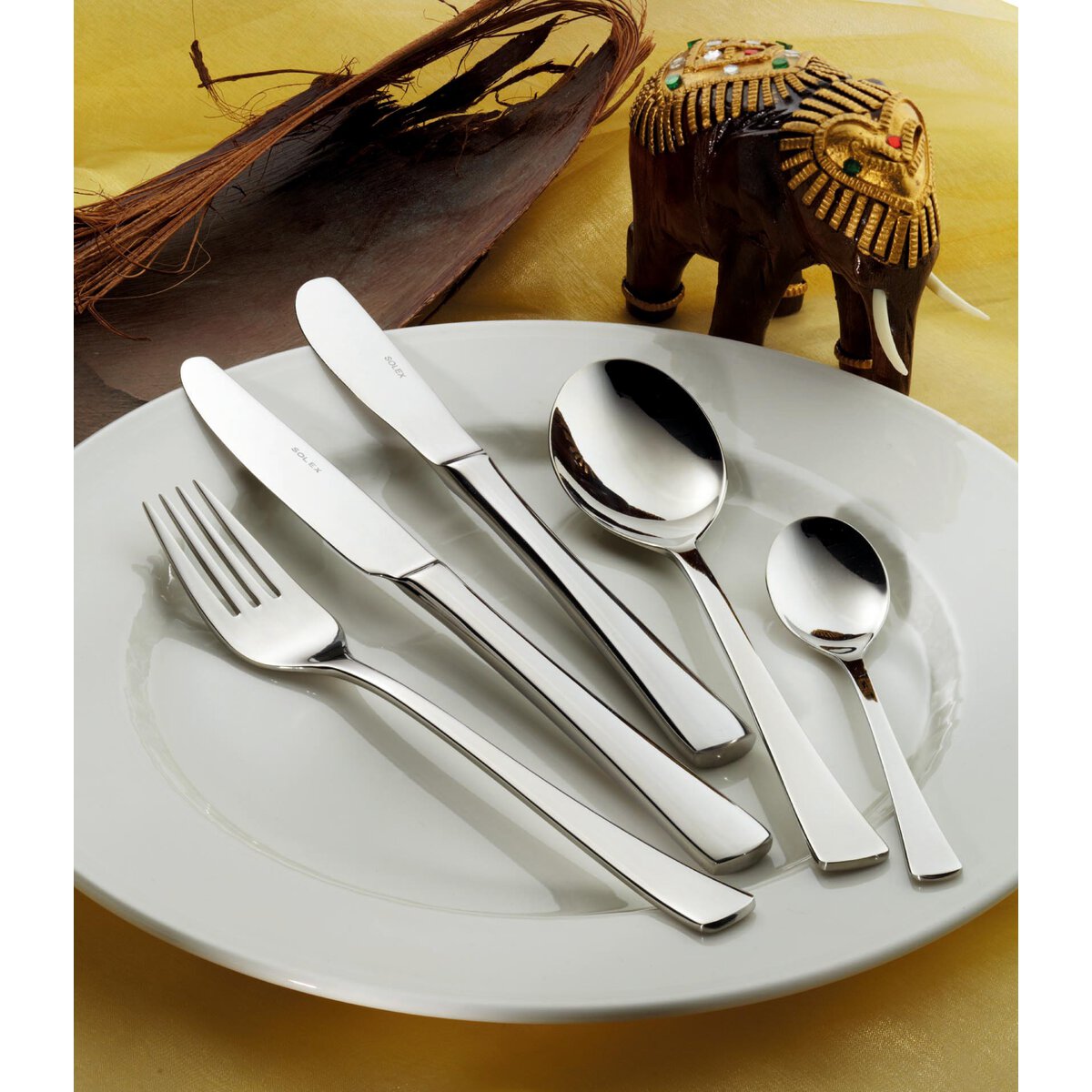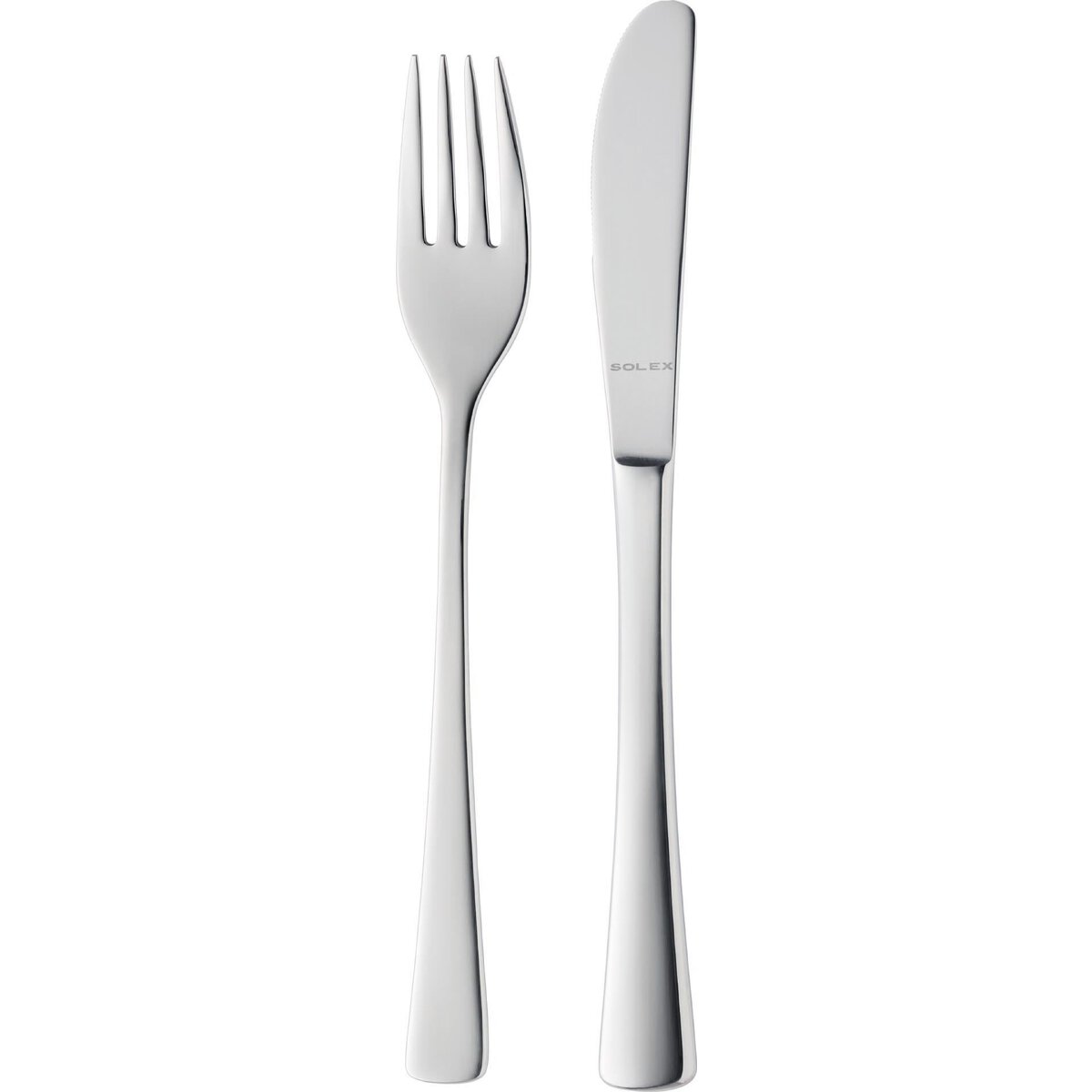 Chrom-Nickel-Stahl 18/10, rostfrei, poliert. Messer mit geschmiedeter Klinge. 3,0 mm stark.