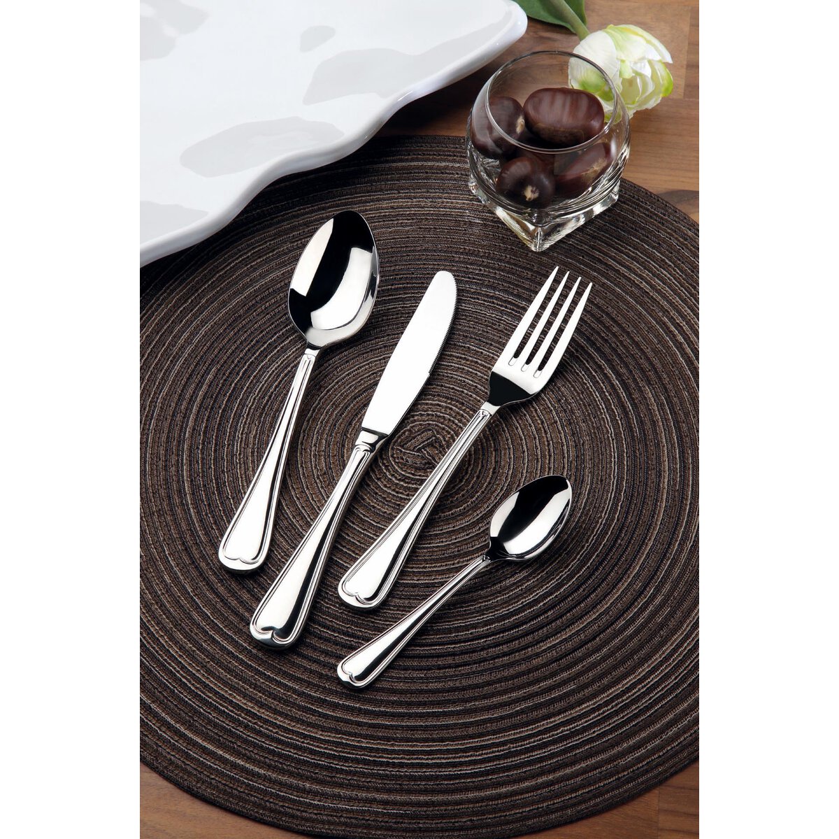 Chrom-Nickel-Stahl 18/10, rostfrei, poliert. 3 mm stark. Messer mit geschmiedeter Klinge. Qualitätsbesteck. Hohe Stabilität.