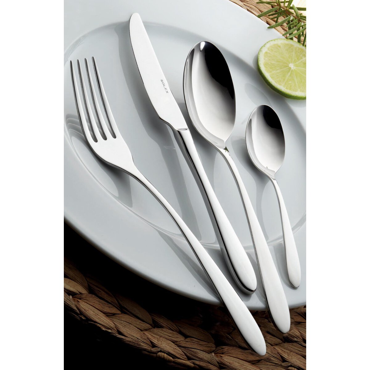 Chrom-Stahl 18/0, rostfrei, poliert. Messer mit geschmiedeter Klinge. 2,5 mm stark. Besteck für Gastronomie- und GV-Bereich. Für magnetische Fließband-Abhebung (Spültechnik, GV-Bereich) geeignet.