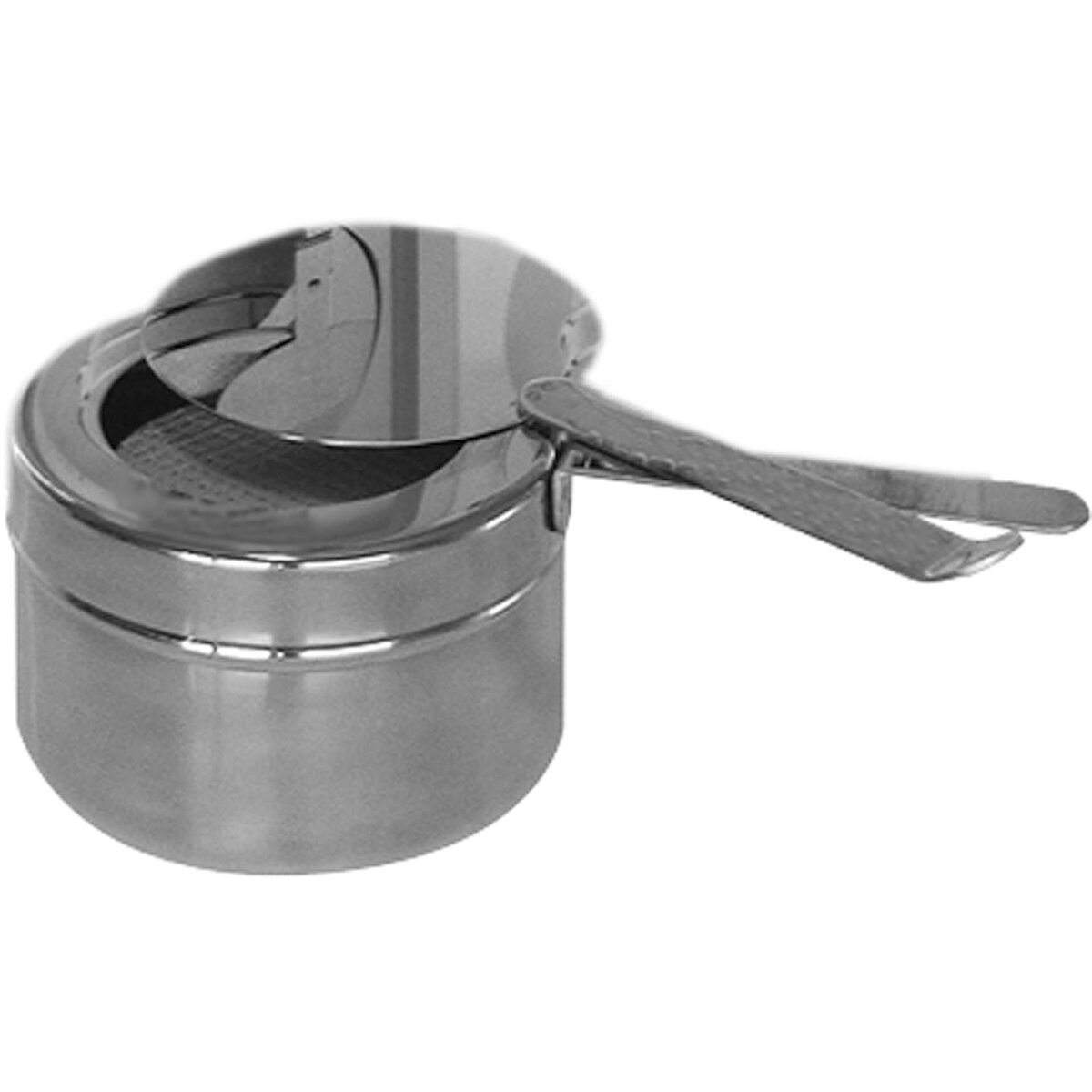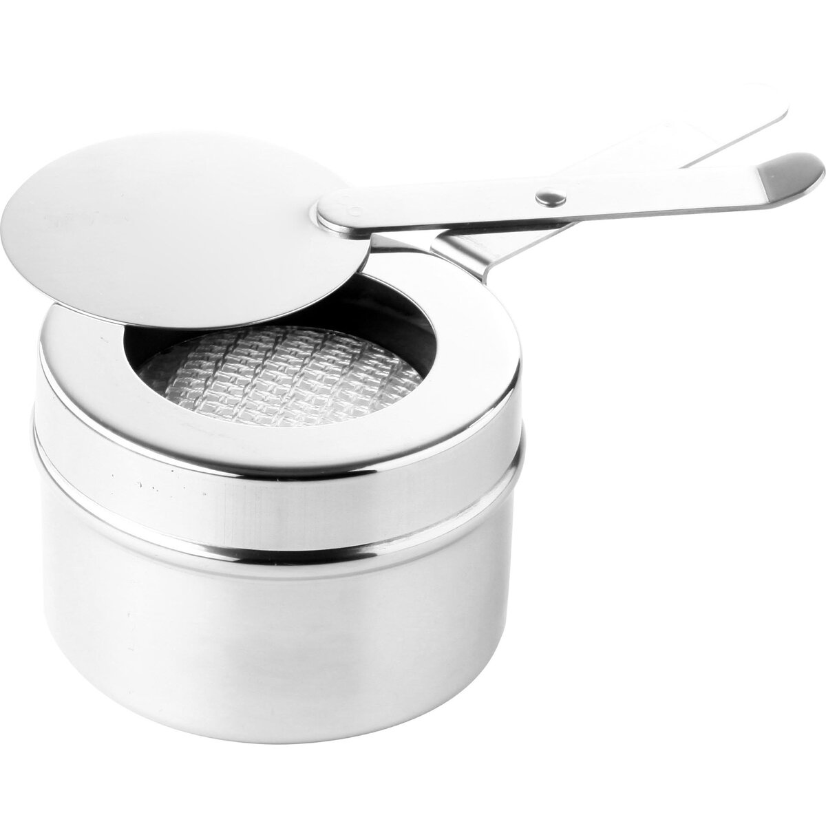 Edelstahl. Sicherheitsbrenndose für Chafing Dishes, nachfüllbar mit Brennflüssigkeit "Ristoflamm". Brenndauer ca. 2-2,5 Std. bei 200 ml Füllung.