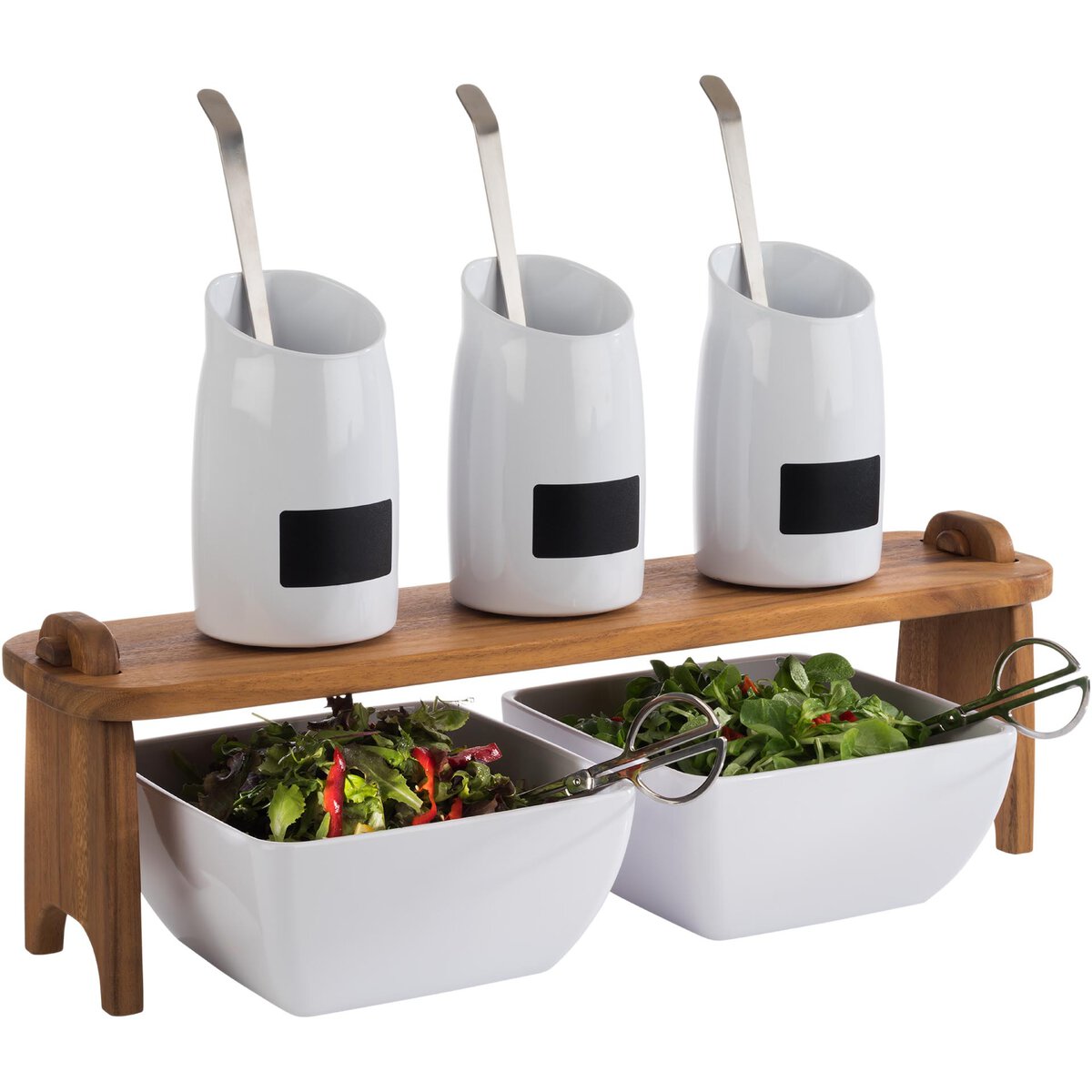 Buffetbrücke aus Akazienholz. Material wasserfest, aber nicht spülmaschinengeeignet.