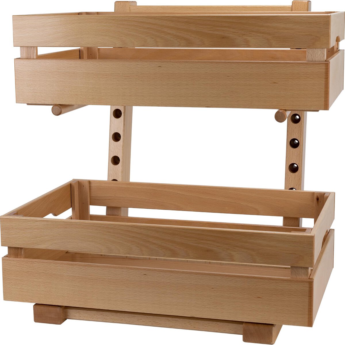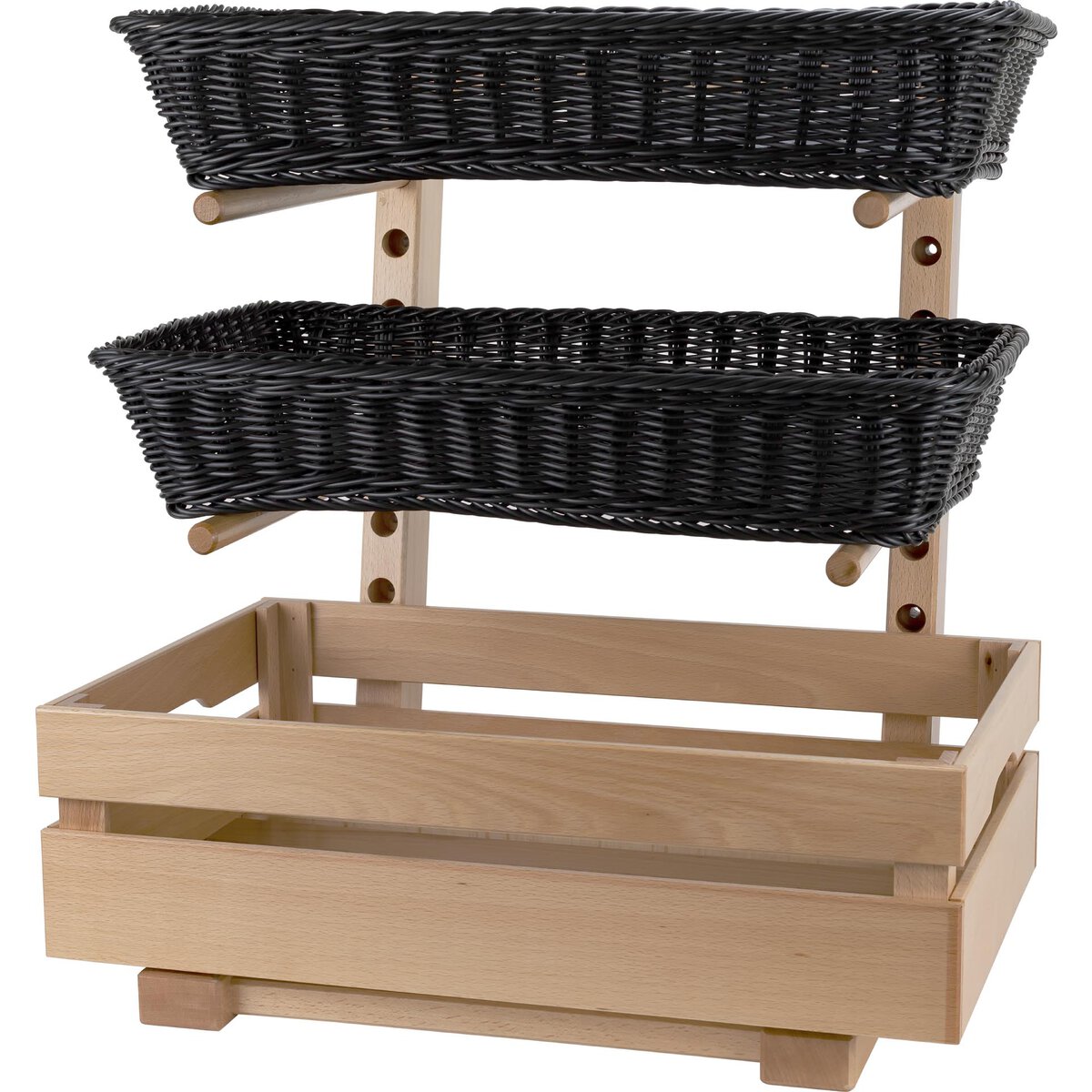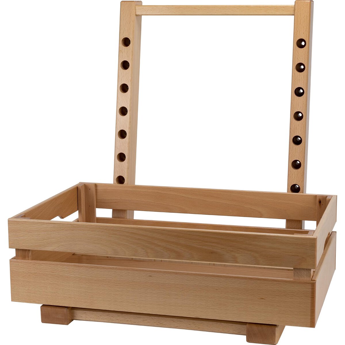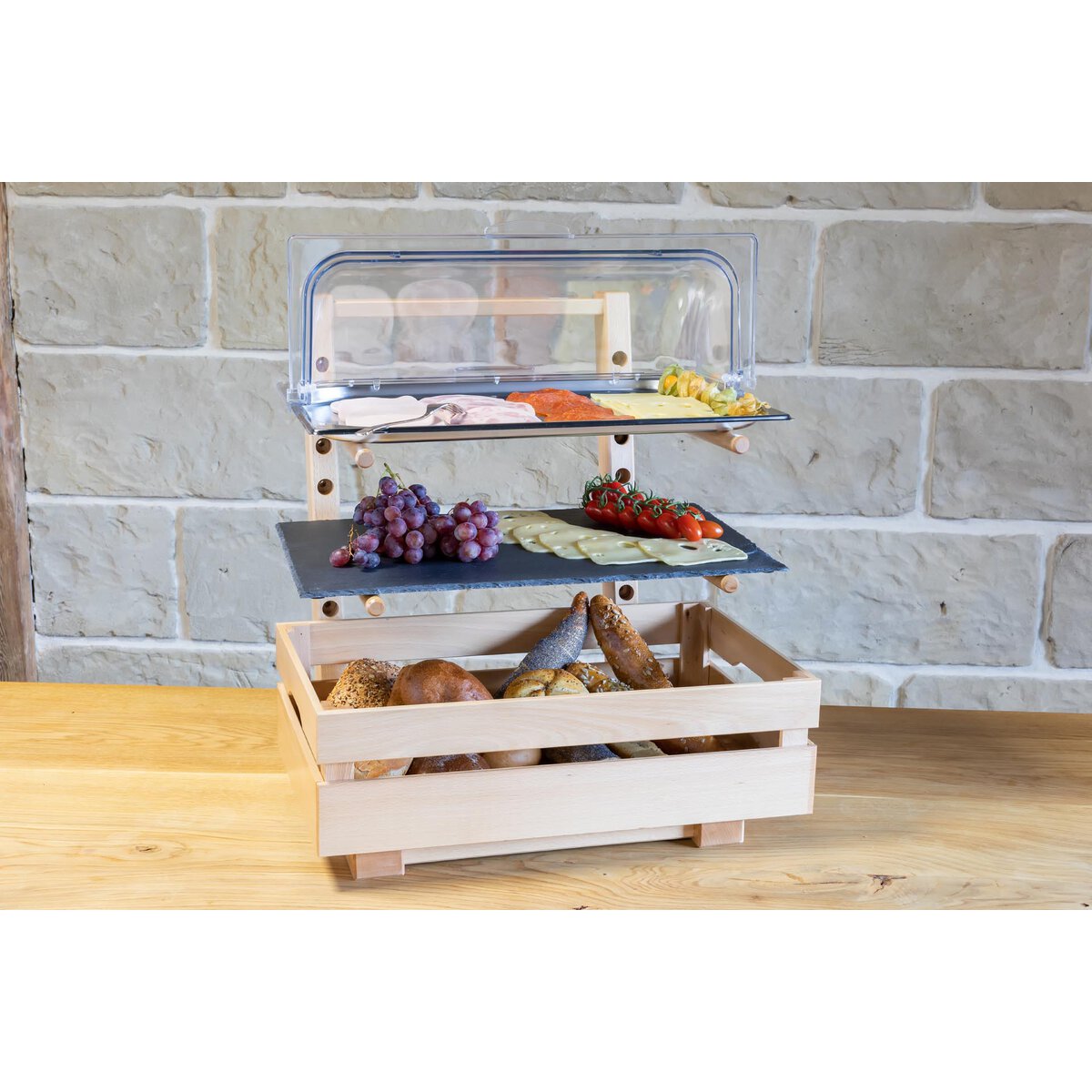 Buffetständer aus Buchenholz. Lebensmittelecht versiegelt um Verschmutzung zu verhindern und eine bessere Reinigung zu gewährleisten. Nicht spülmaschinengeeignet! Lieferumfang: Ständer, vier Rundhölzer und Befestigungschrauben. LxBxH: 43,5x46x58cm. Maße der Stäbe: Ø 1,8cm, Länge 38cm. Hierzu passende Box (Art.: 15256) separat erhältlich.