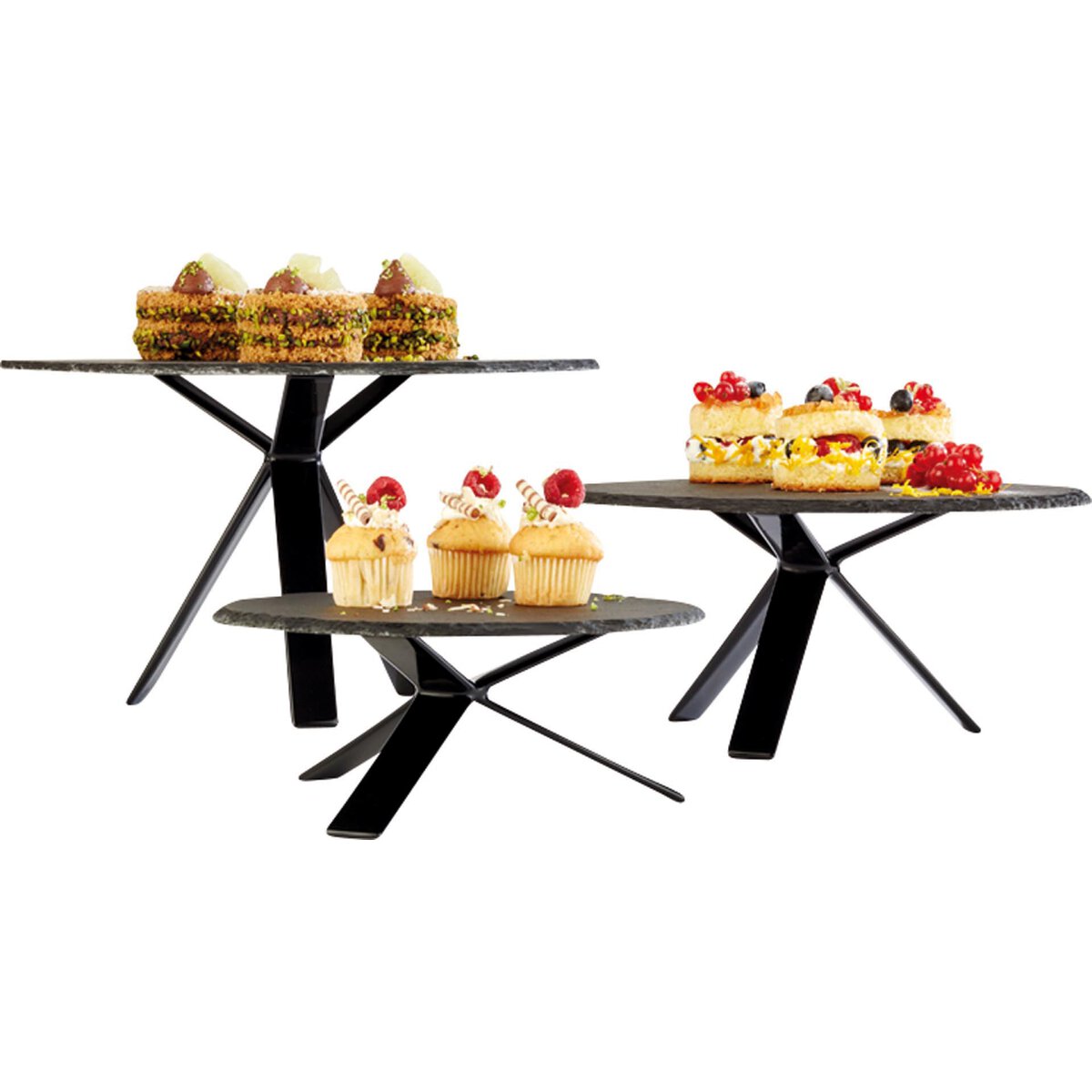 Metall, schwarz ummantelt mit Antirutschgummierung. Stapelbar. Spülmaschinengeeignet. Vielseitig einsetzbar z.B. mit Platten oder Schüsseln, flach oder hochkant aufstellbar.