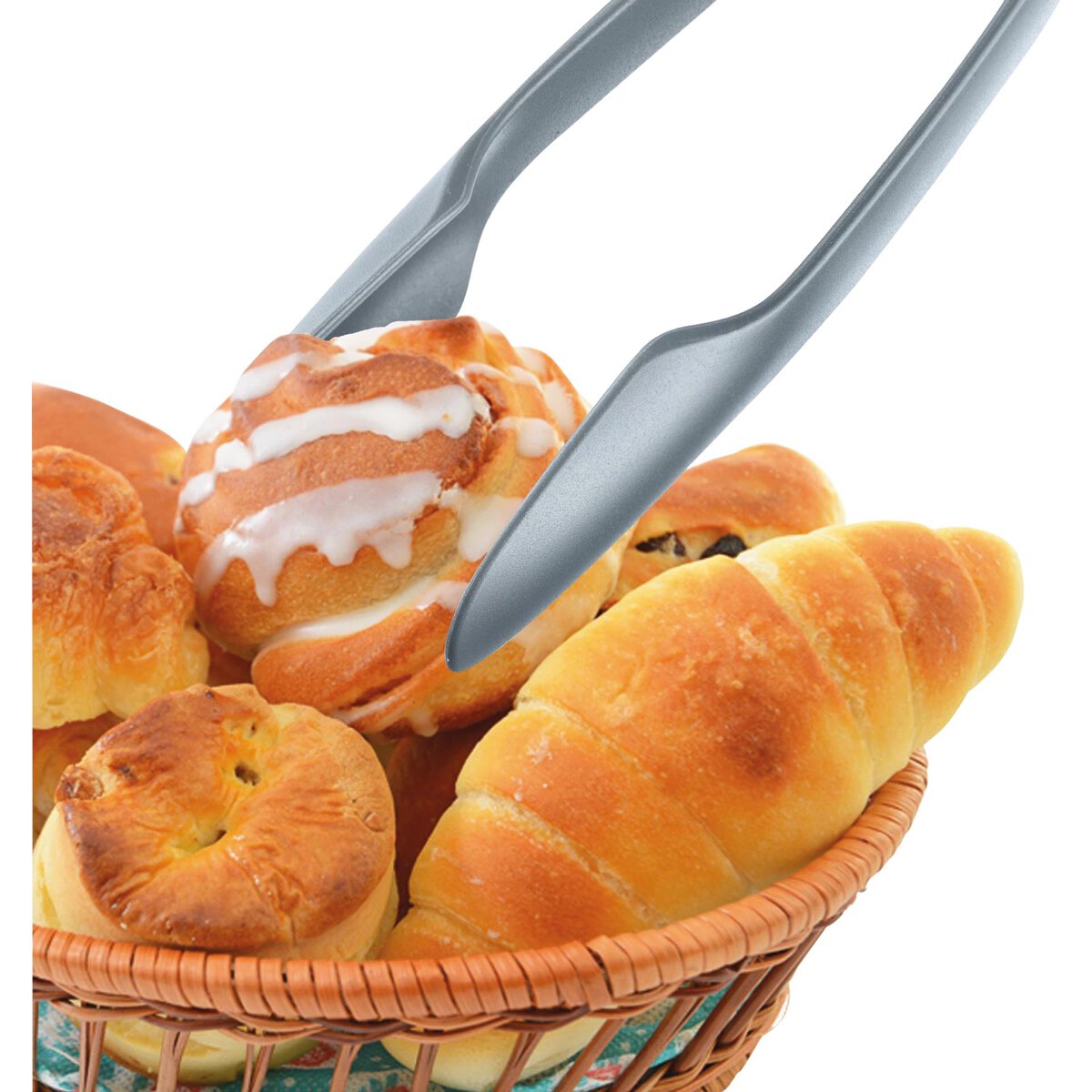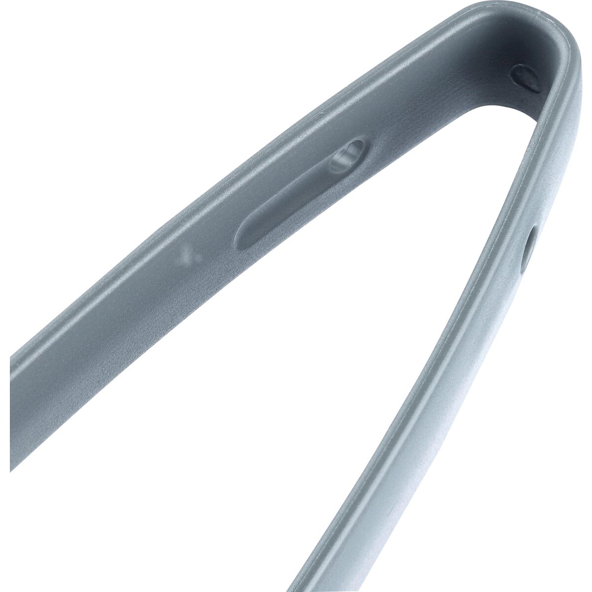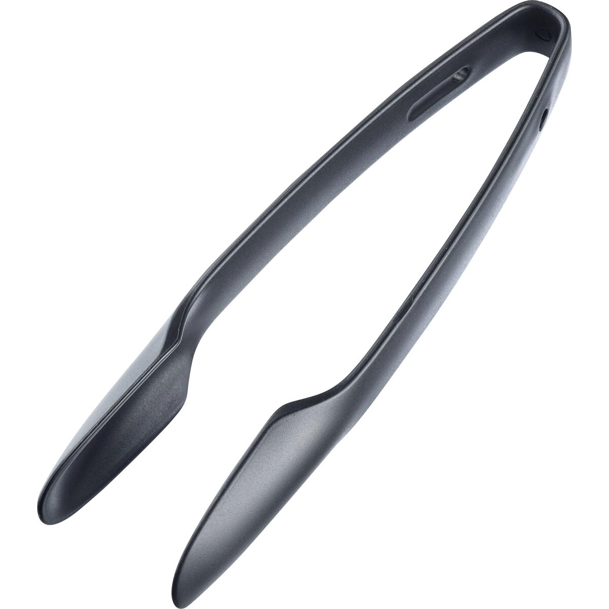 PP, stabiles Zangenset (schwarz/grau), hält auch kleine, rutschige oder ölige Lebensmittel wie z.B. Oliven oder Eiswürfel sicher durch eine spezielle Ausformung, ineinander geklickt platzsparend aufbewahrt, spülmaschinengeeignet.