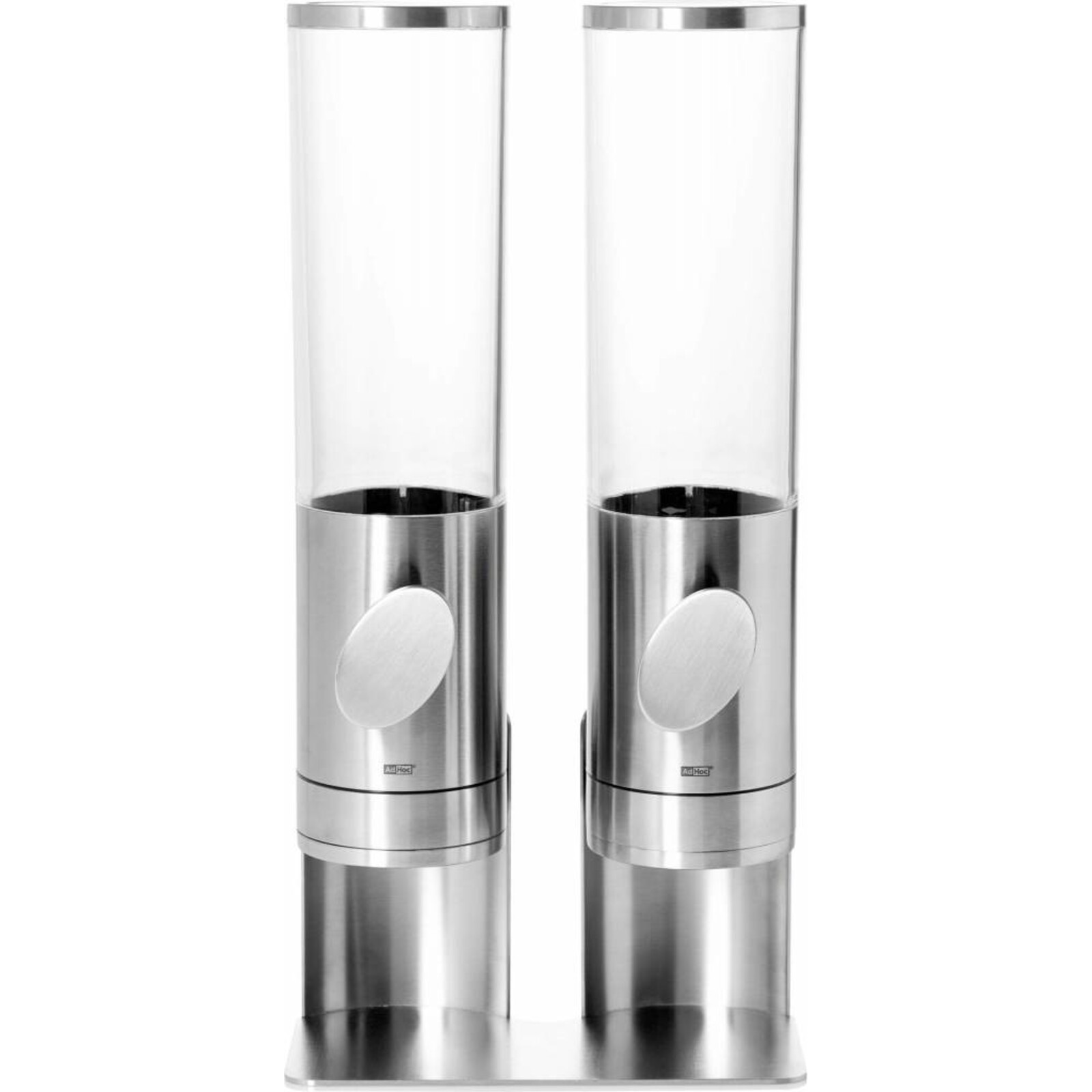 Edelstahl/Acryl. Mit Ständer. Volumen je ca. 1,5 Liter. Geeignet für Cerealien, Reis, Getreide, Süßigkeiten, Nüsse uvm. Zur Verwendung am Tisch ist der Spender abnehmbar. Krümelfreies, leichtes Portionieren. Aromaschutzkappe schützt die Lebensmittel und sorgt für eine saubere Arbeitsfläche. Einfache Reinigung.