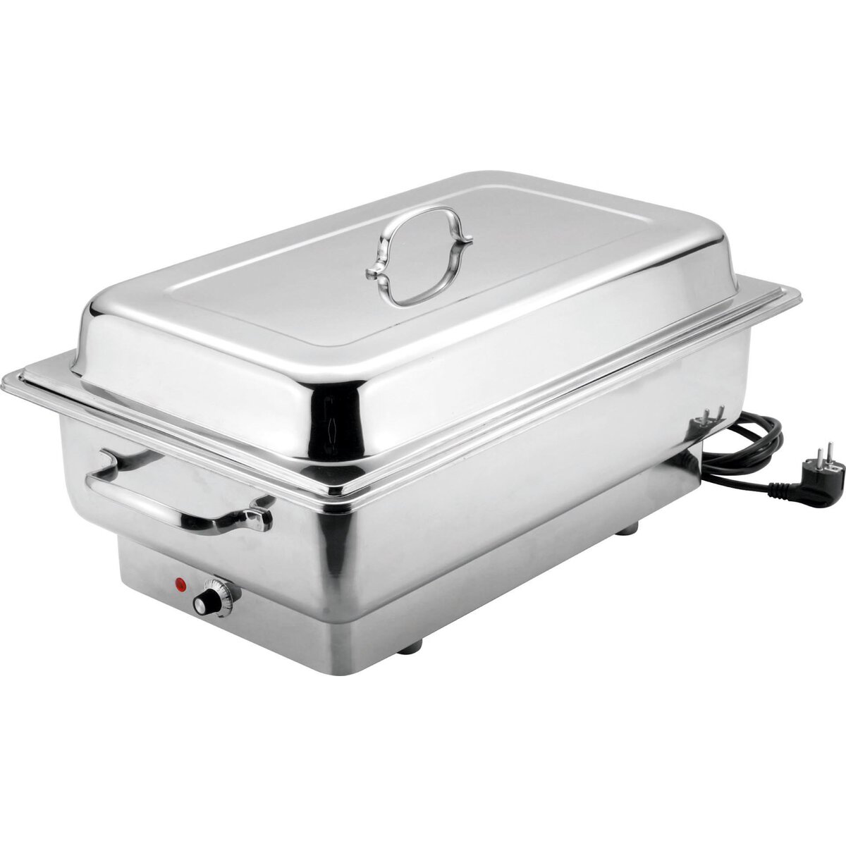 Edelstahl 18/10, thermostatische Regelung 1-8. Lieferung inkl. 1/1 GNx100 mm tief, Deckel und Deckelhalter. Maße: 1/1 GN, Anschlusswert: 230V/1,0 kW. Mit Eurostecker-Anschluss!