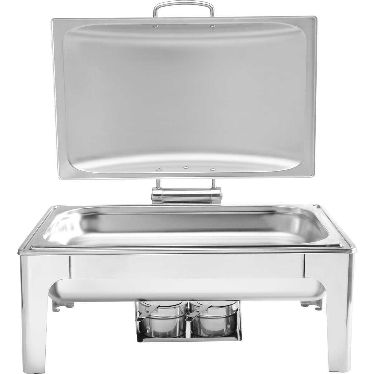 Ideal für den Einsatz am Buffet und im Catering. Satinierter Chafing Dish inkl. Zubehör aus langlebigen Edelstahl. Der Deckel ist mit einer Bremse ausgestattet; dadurch verbleibt dieser in der gewünschten Stellung und kann für eine einfache Reinigung auch abgenommen werden. Inkl. zwei Brennpastenbehälter, einem 1/1 GN-Einsatz 65 mm und einem herausnehmbaren Wasserbehälter.