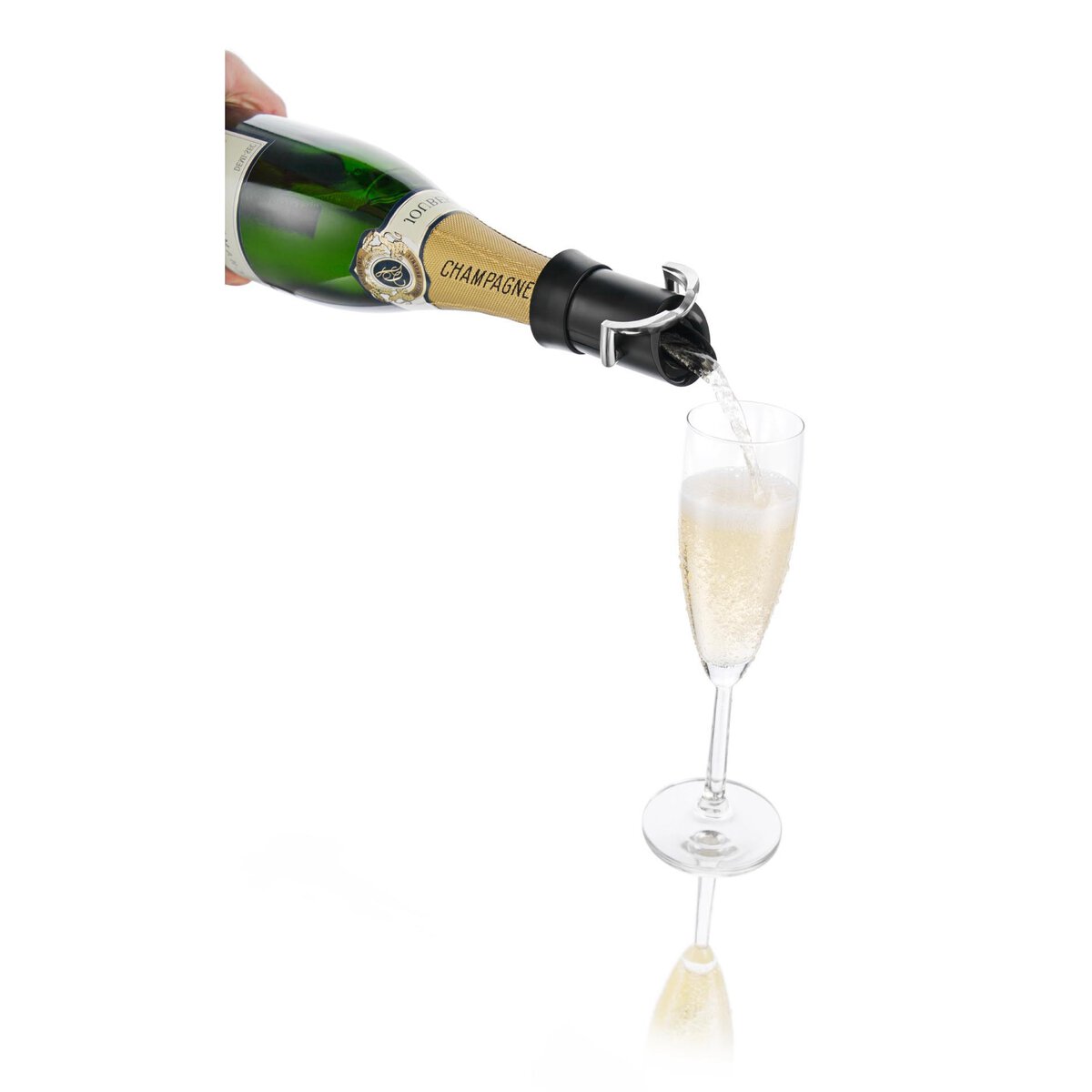 Kunststoff. Geschmack und Kohlensäure bleiben erhalten. Hält Champagner frisch. Tropffreies Ausschenken. Geeignet für Sekt- und Champagnerflaschen.