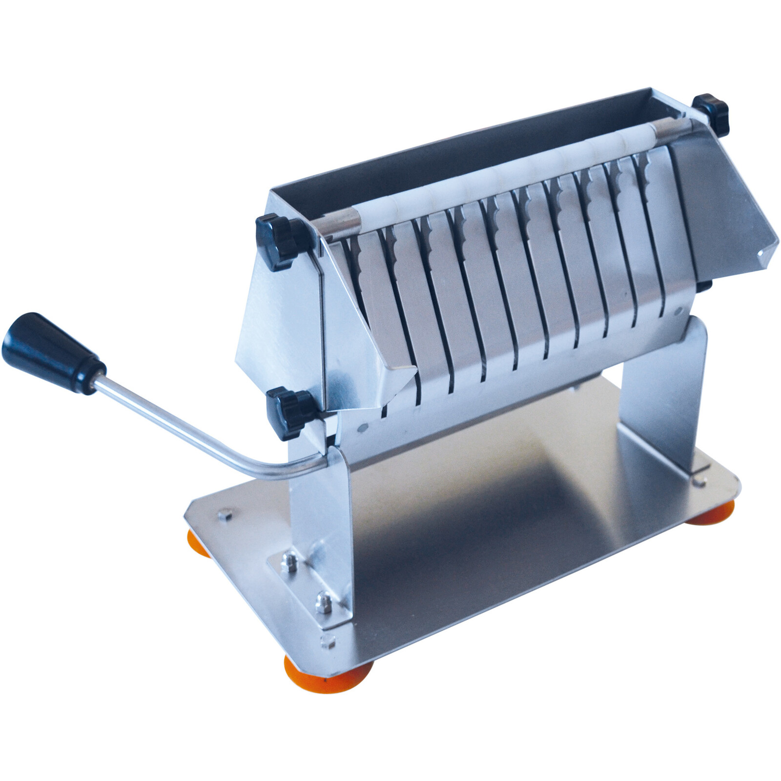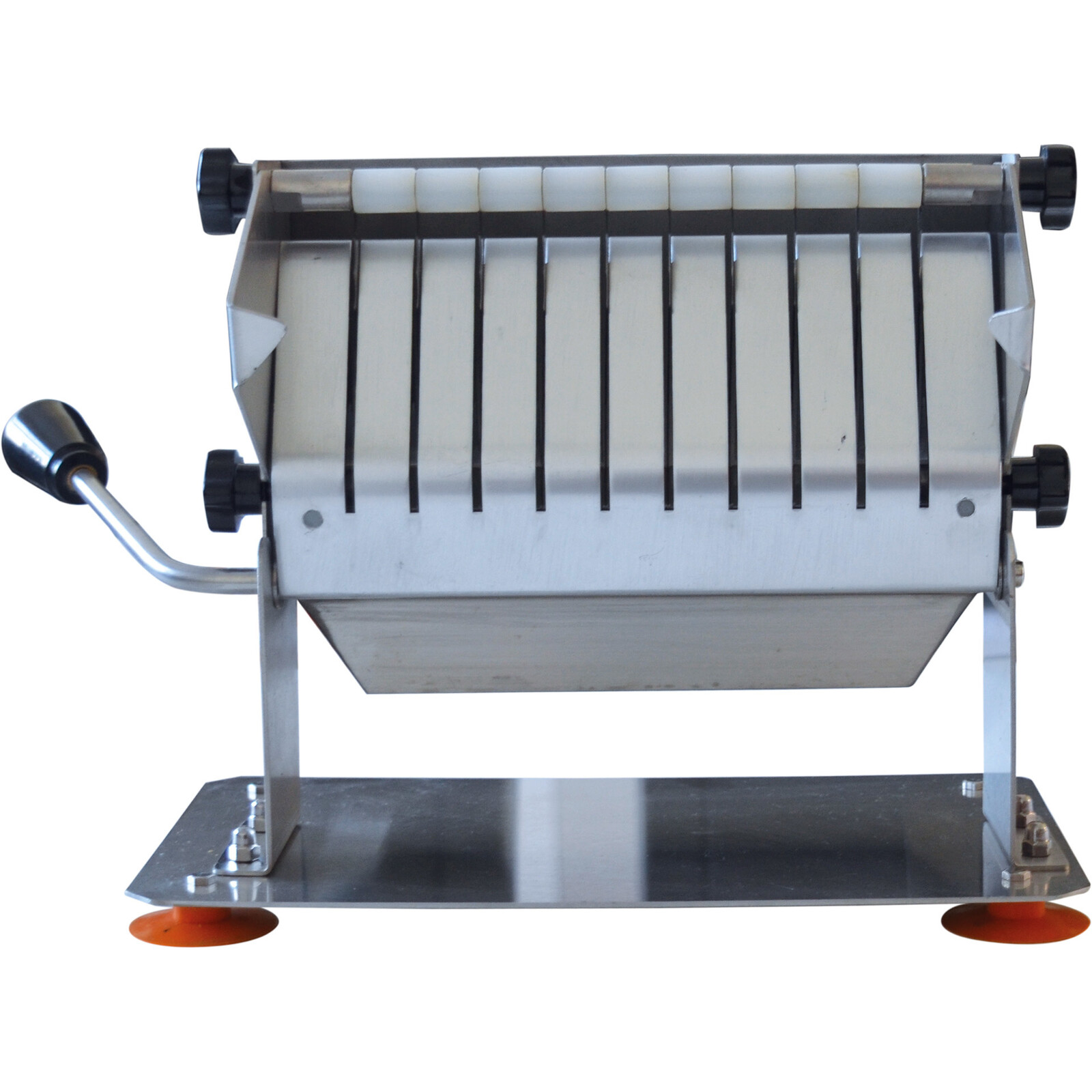 Edelstahl. Scheibenstärke 17,5 mm. 11 Abschnitte. Arbeitsbreite 21 cm. Gewicht: 2,3 kg.
