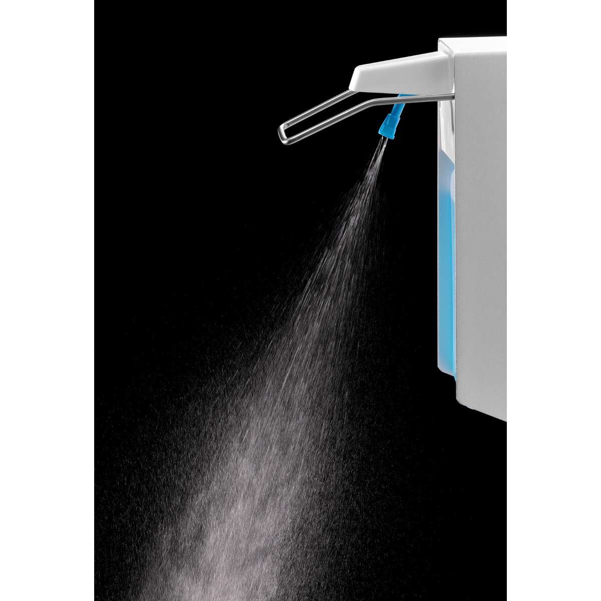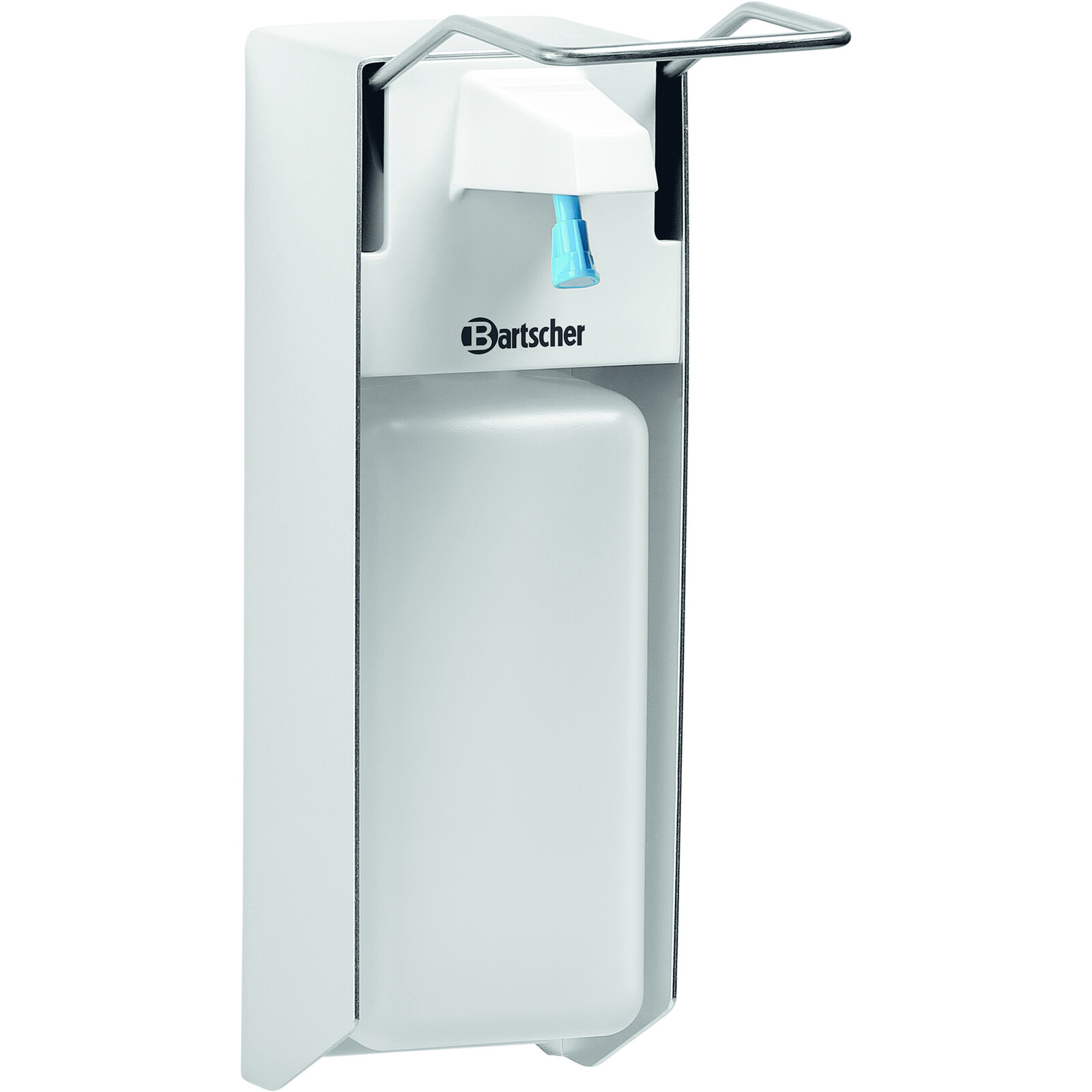 Aluminium/PP/ABS, weiß/silber, Pump/Sprühsystem. Schnelle und unkomplizierte Händedesinfektion für max. Schutz. Mit dem kartuschenlosen Pumpsystem schafft der Spender mit Ellbogenbedienung optimale Hygienebedingungen. Inkl. Wandhalter und Befestigungsmaterial.