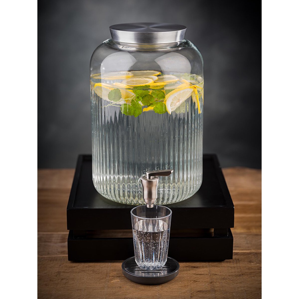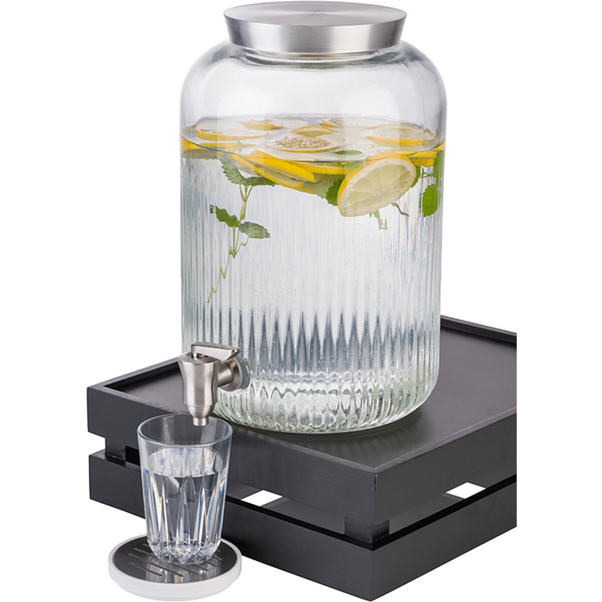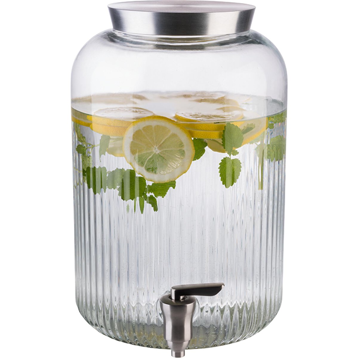 Dicke, stabile Wände, weite Öffnung für große Zutaten. Behälter aus Glas, Zapfhahn aus Edelstahl, Deckel aus gebürstetem Edelstahl. Stabile, hochwertige Ausführung. Spülmaschinengeeignet.