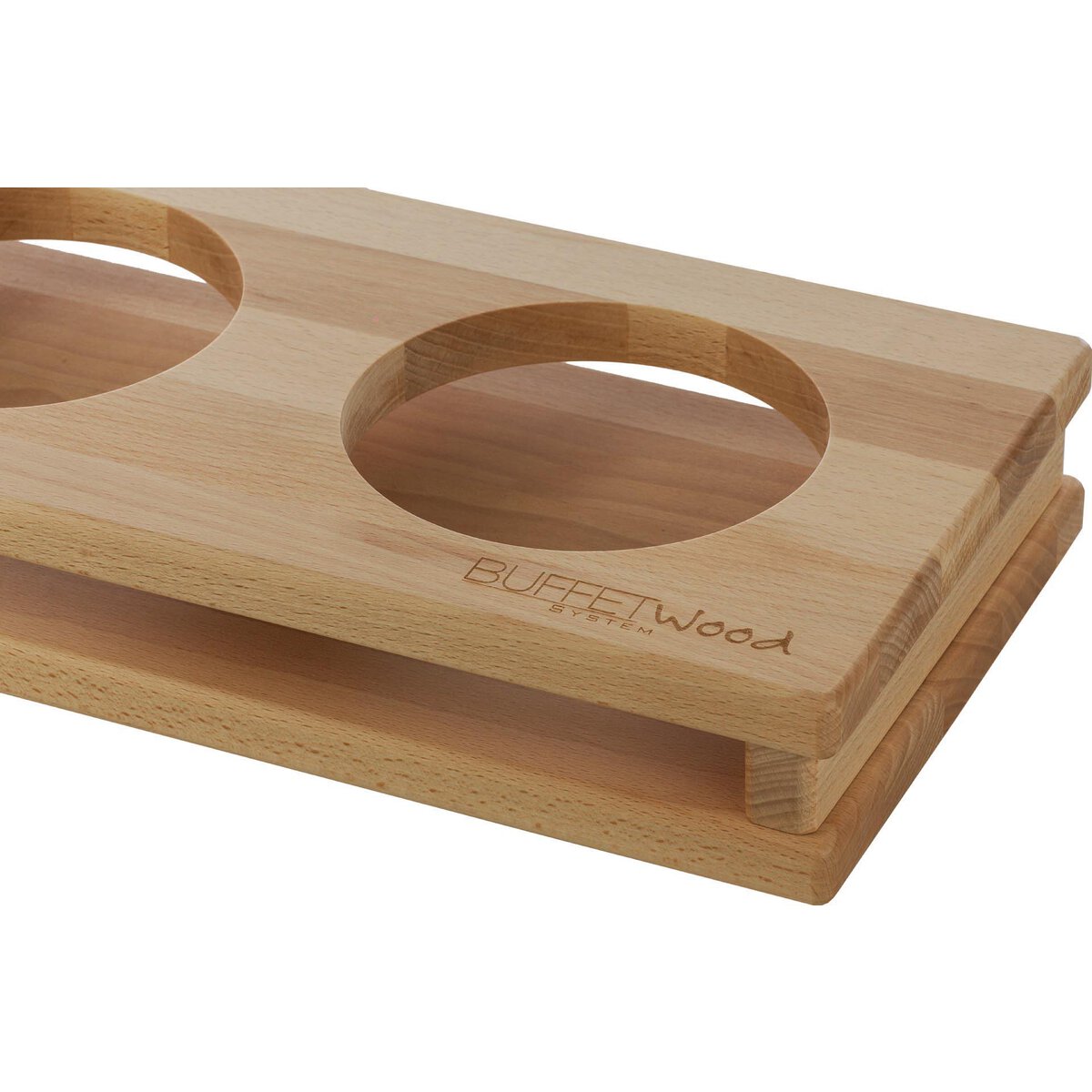 Buche. Passend zu Buffetsystem "Wood". Ecken abgerundet. Mit Gummifüßchen. Plattenstärke: 2 cm.