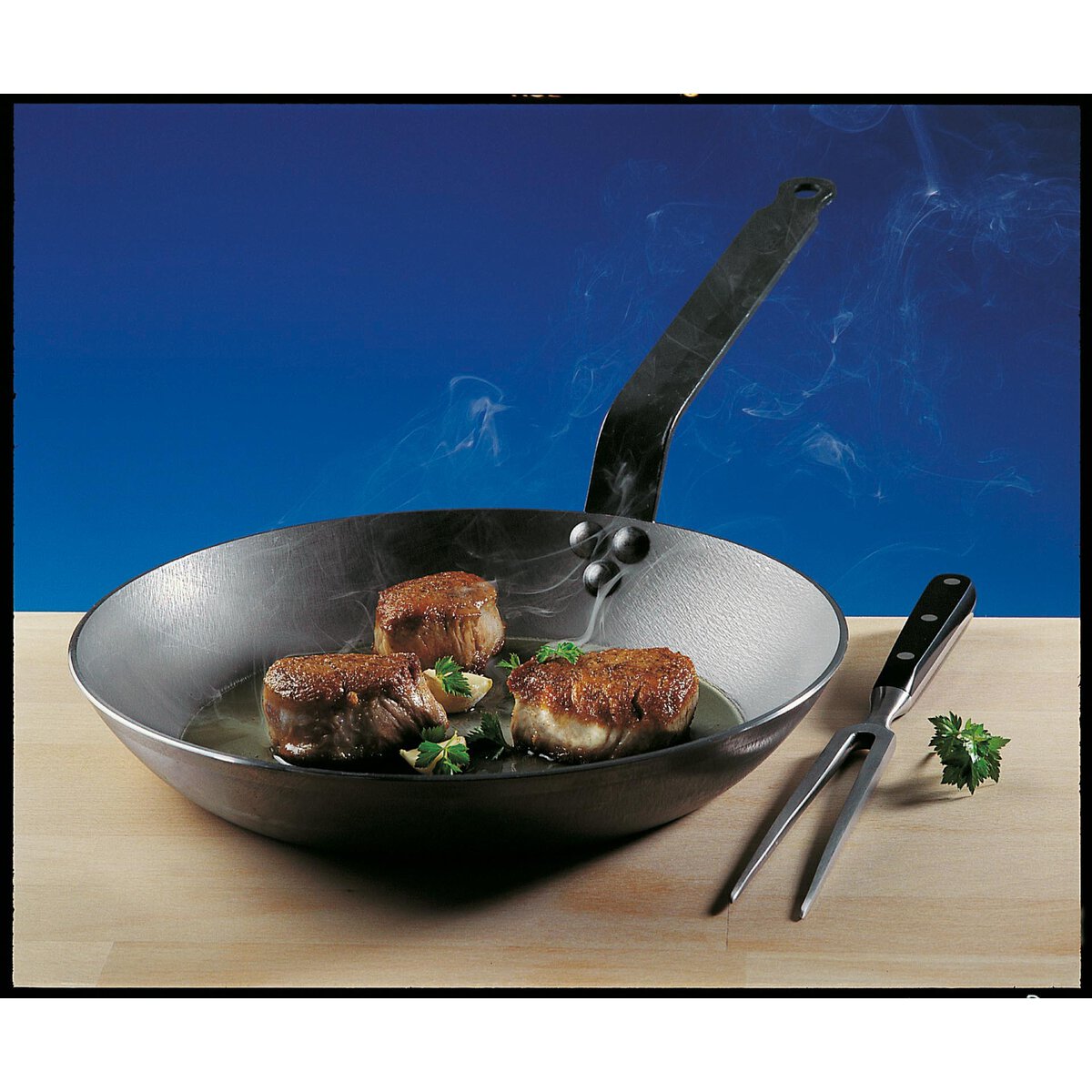 Eisenstahl, schwere Ausführung. Für alle Herdarten geeignet, auch Induktion. Ab Ø 32 cm mit Gegengriff.