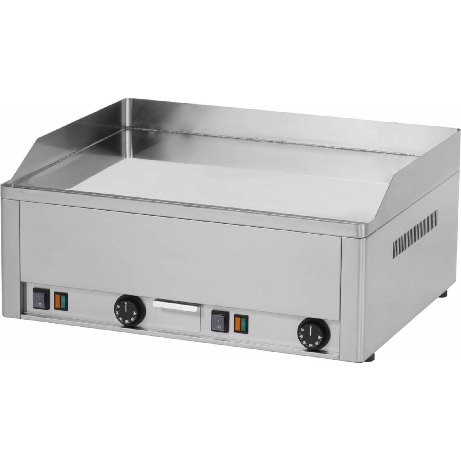 Außenverkleidung aus rostfreiem Edelstahl. Inkl. Fettauffangschale und Spritzschutz. Griddleplatte glatt. Mit hartverchromter Spezial-Stahlplatte für eine noch bessere Wärmeleitung und einfachere Reinigung. Temperaturregelung von 50°C bis 300°C. Mit Eurostecker-Anschluss!