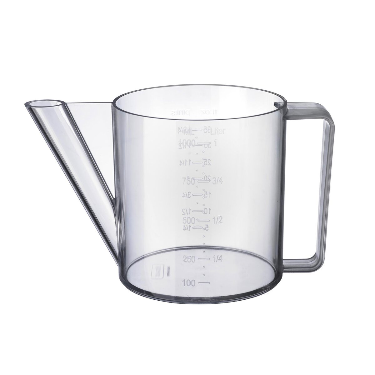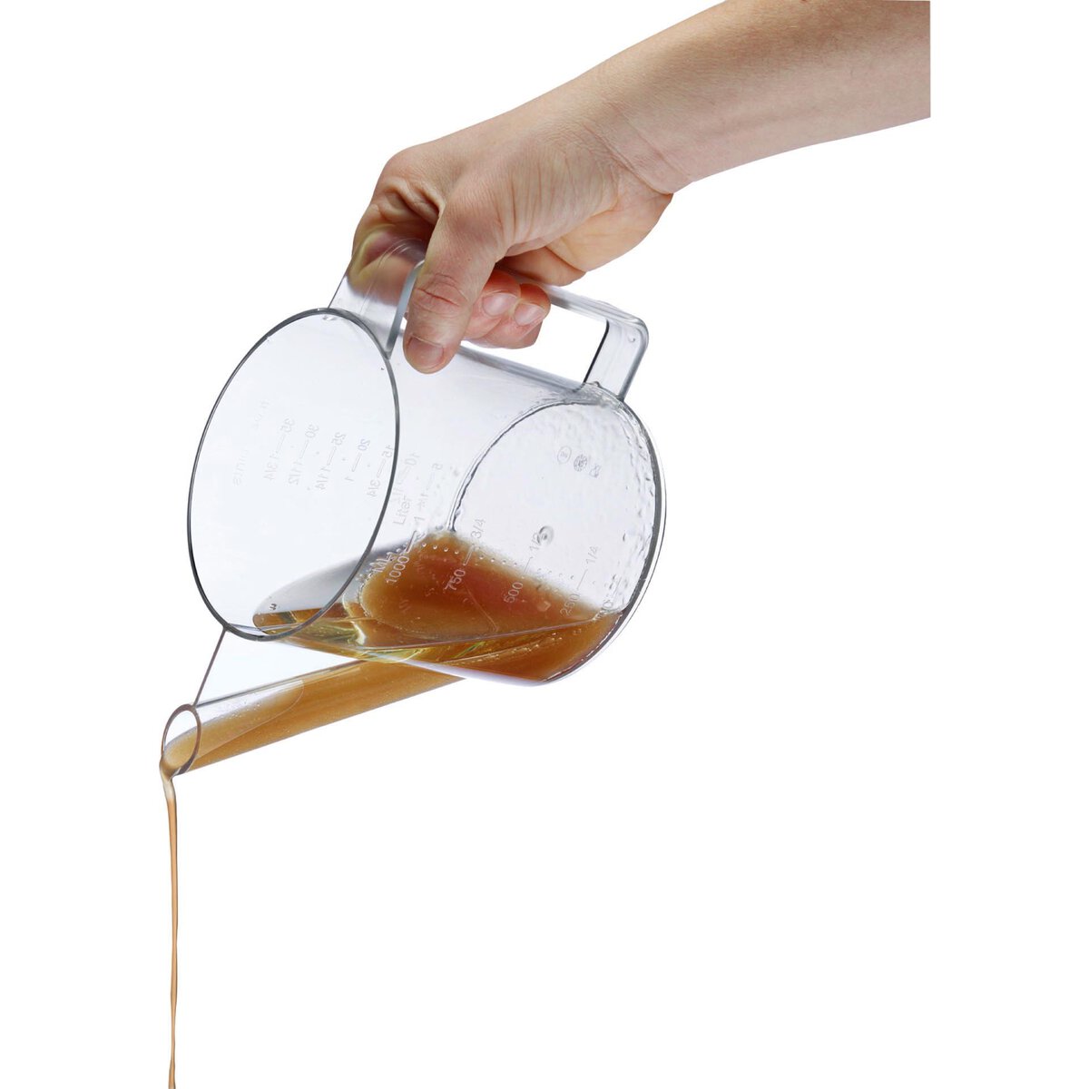 SAN. BPA FREE. Trennt Fett von Bratsäften oder Saucen. Mit Skala für das Abmessen von bis zu 1000 ml.