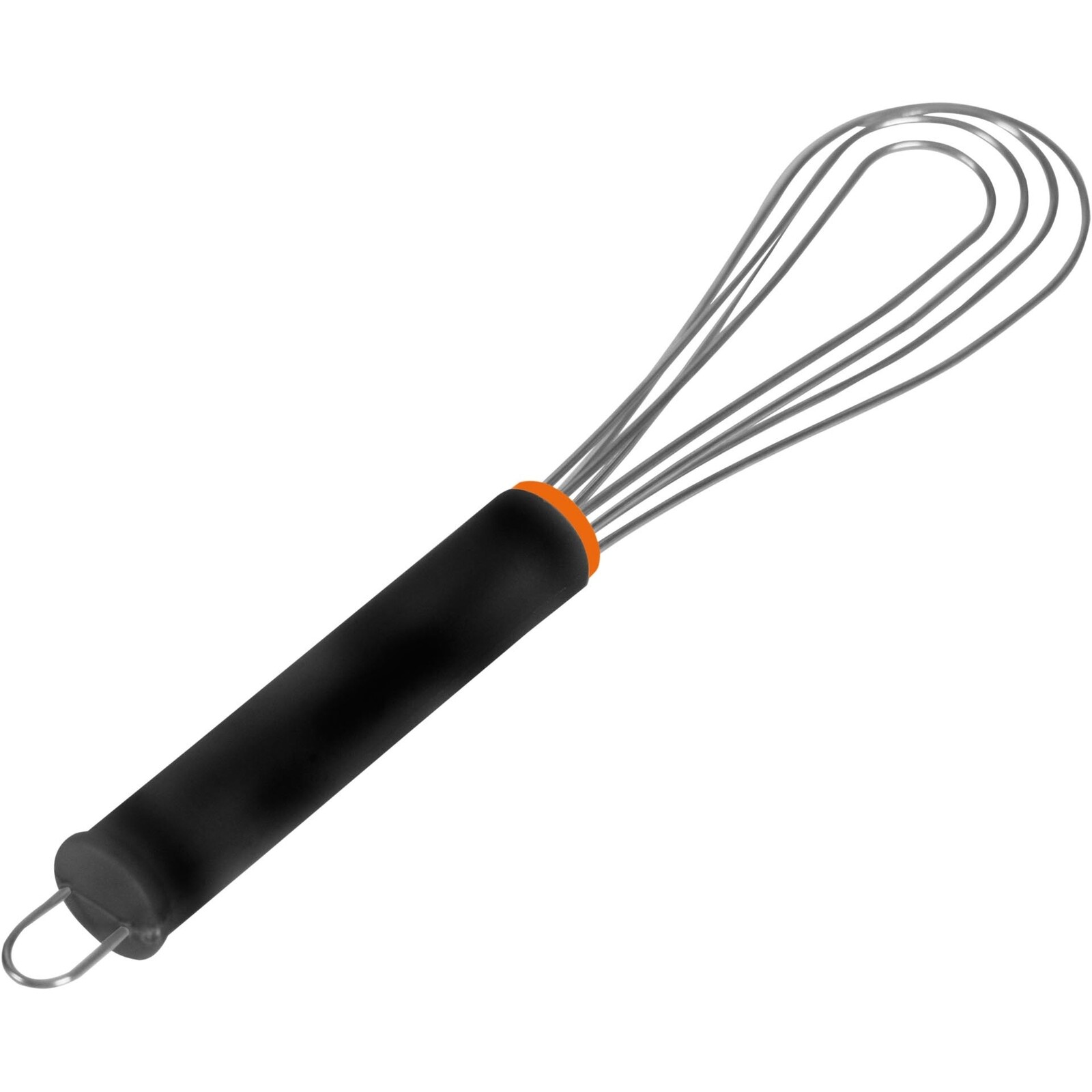 Edelstahl, schwarzer thermoplastischer Griff (Polypropylen). 4 Drähte, Drahtstärke 2 mm, Aufhängeöse, hitzebeständig bis 200°C, spülmaschinengeeignet. Speziell für das Unterheben von schweren Massen und Saucen, Cremes und Mehl. Auch für Fettgebäck bestens geeignet.