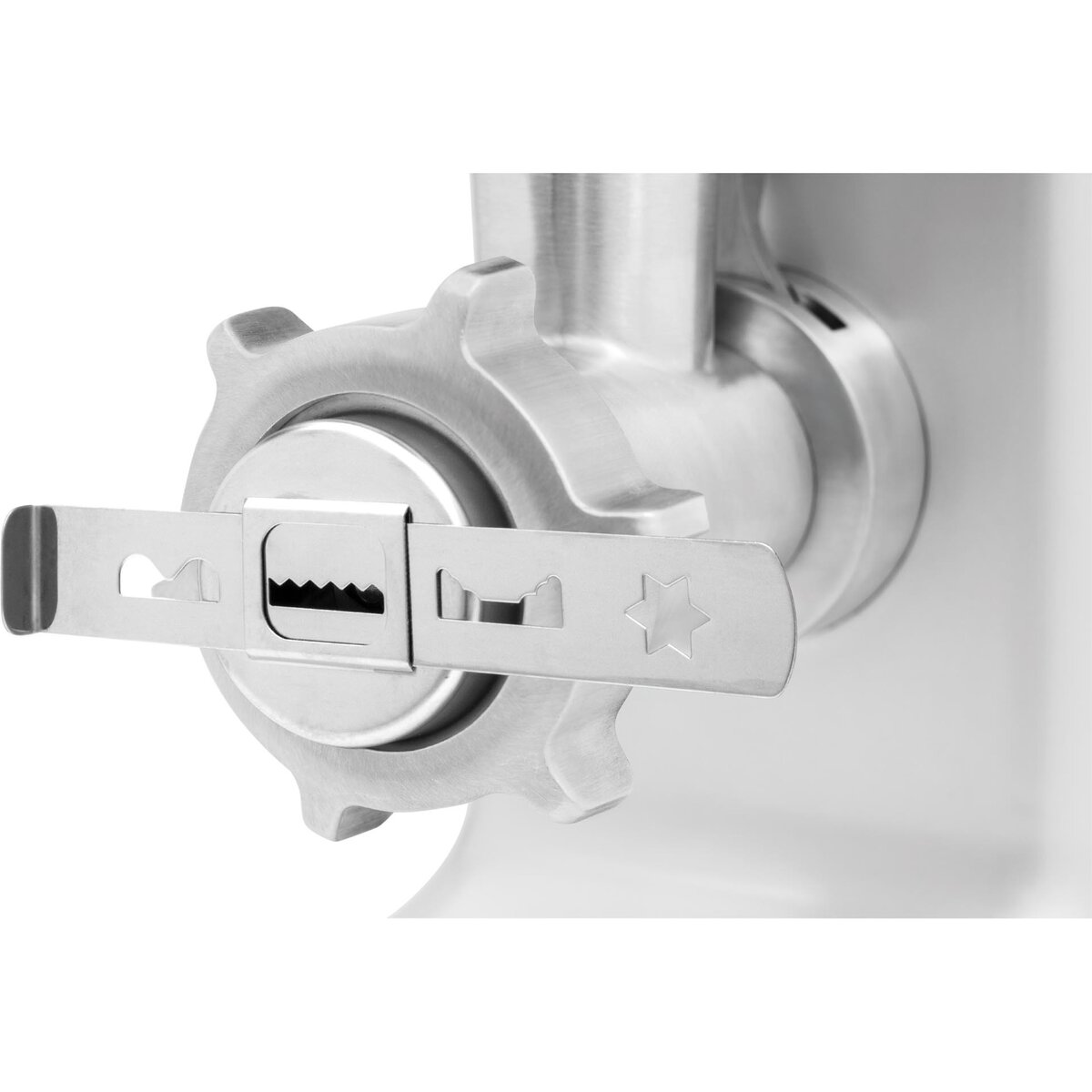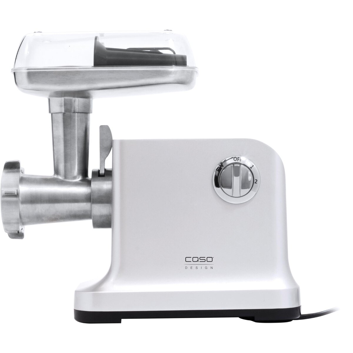 Fleischwolf mit Alu-Guss-Gehäuse. Ausgestattet mit einem starken Motor und Metall-Getriebe verfügt der Fleischwolf über einen Vor- und Rücklauf sowie zwei Geschwindigkeitsstufen. Bedienerfreundliche Handhabe durch das große Alu-Einfülltablett. Zur leichteren Reinigung ist der Vorsatz einfach abnehmbar. Die Lieferung beinhaltet drei Edelstahlschneidsätze (3, 5 und 8 mm), einen Wurstfüller, einen Spritzgebäckaufsatz und einen Stopfen.