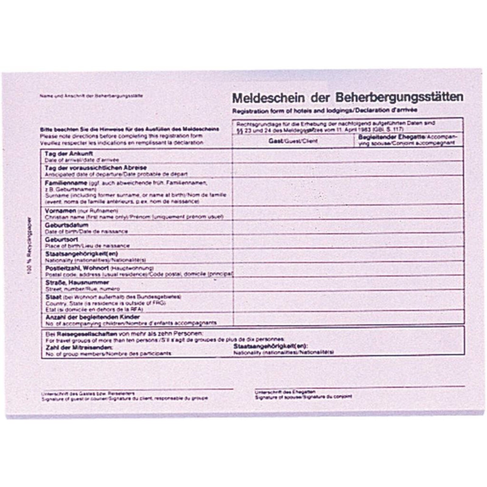 Fremdenmeldeblock