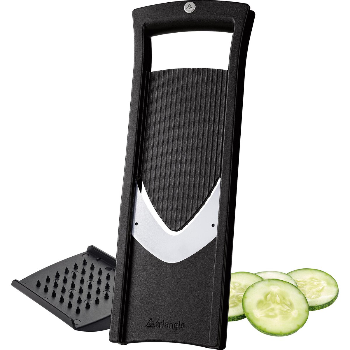 Edelstahl 18/8, PA, Parabelklinge, 2-in-1 Restehalter und Klingenschutz. Spülmaschinengeeignet