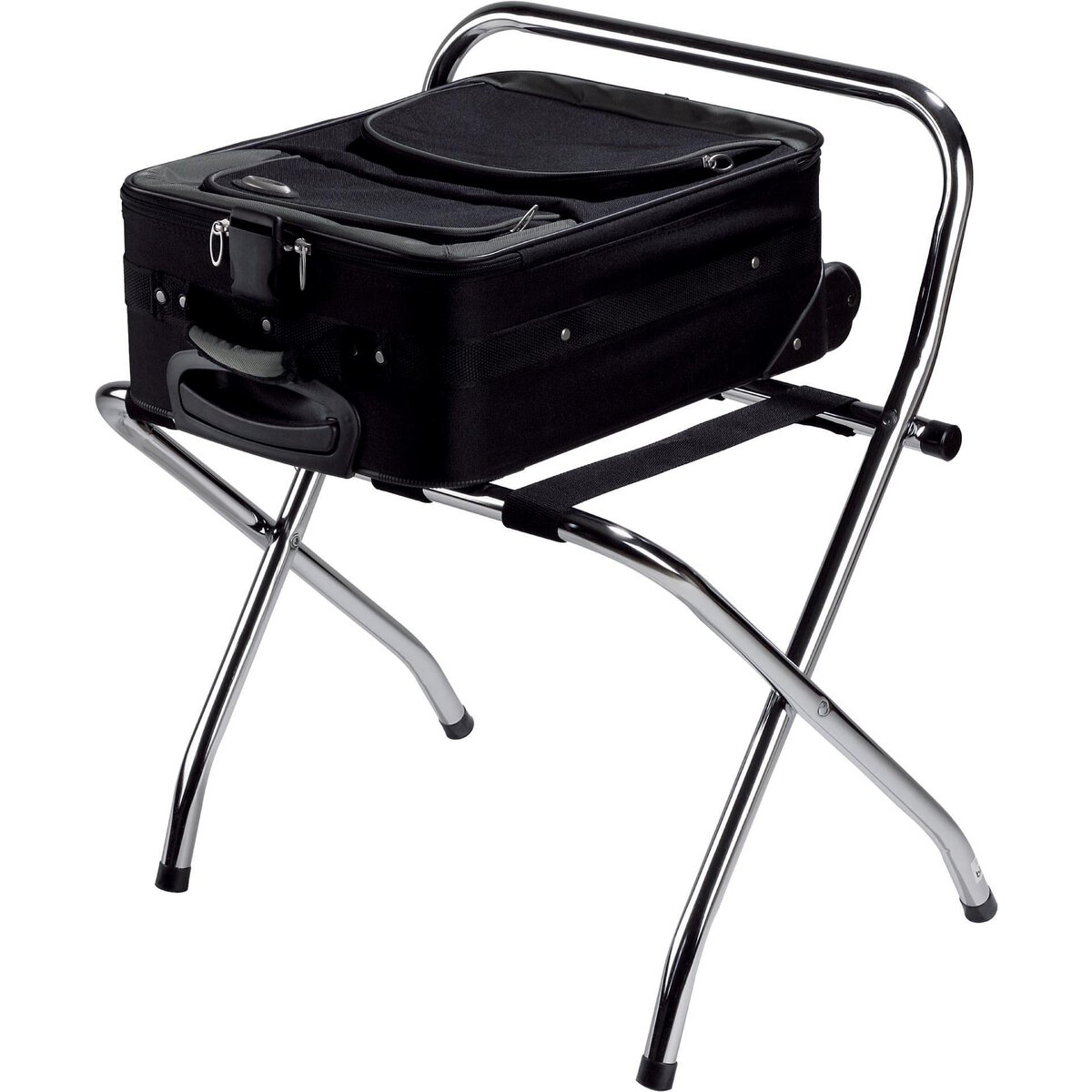 Stabiles Stahlrohrgestell, verchromt. Ø Rohr 25 mm. Bänder aus Polyester. Zusammenklappbar.