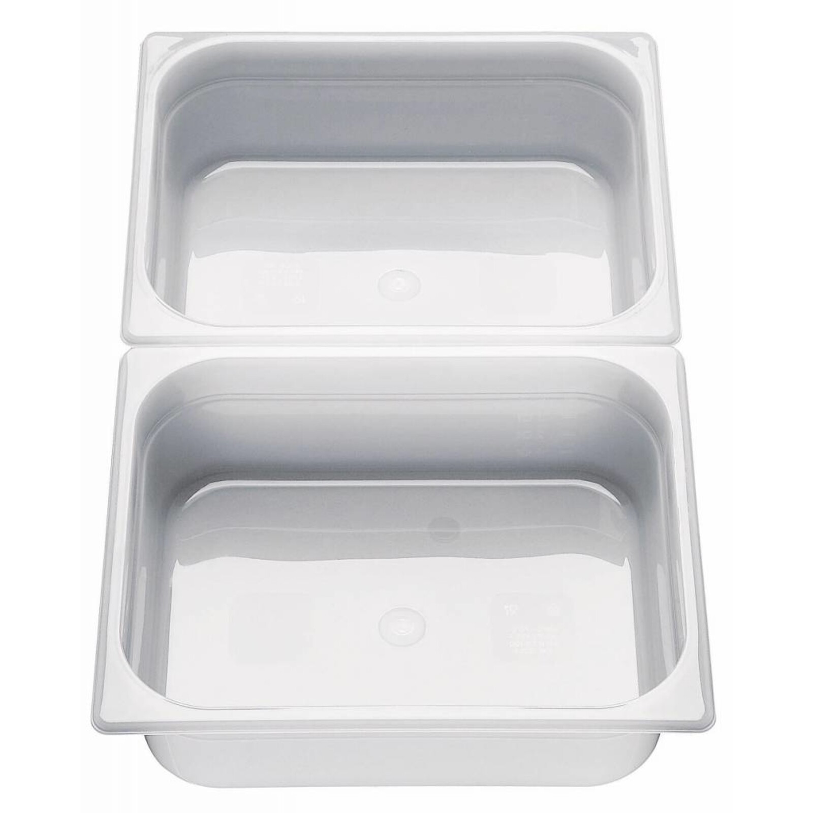 Polypropylen, einsetzbar von -40°C bis +70°C, spülmaschinen- und mikrowellengeeignet.