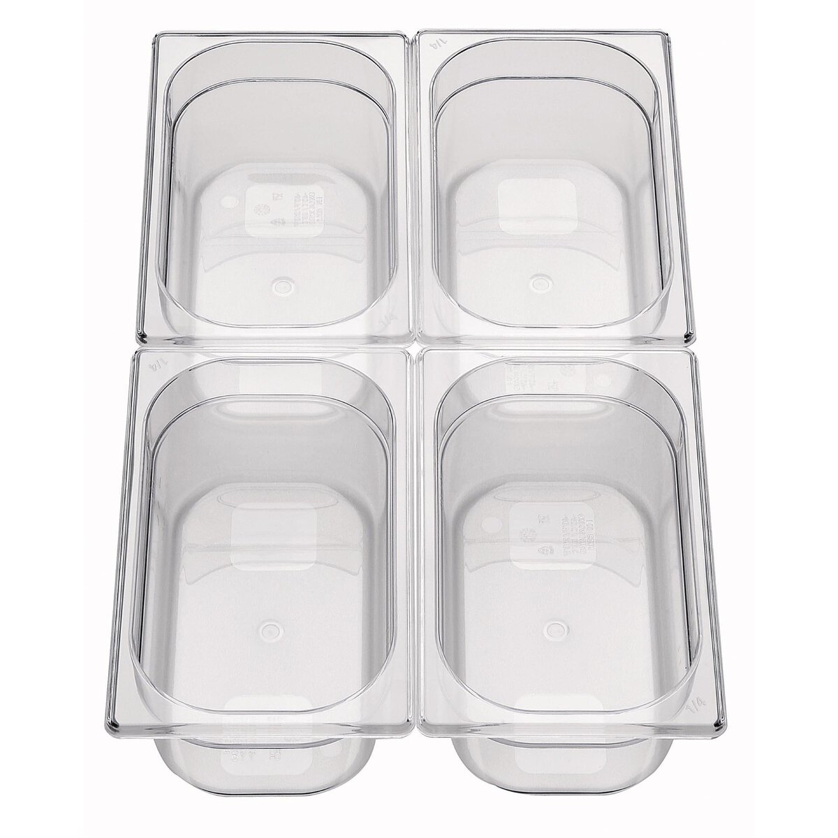 Polycarbonat, transparent, stapelbar, bruchsicher, mit Skalierung. Einsetzbar von -40°C bis +100°C. Spülmaschinen- und mikrowellengeeignet. Passende Deckel bitte separat mitbestellen.