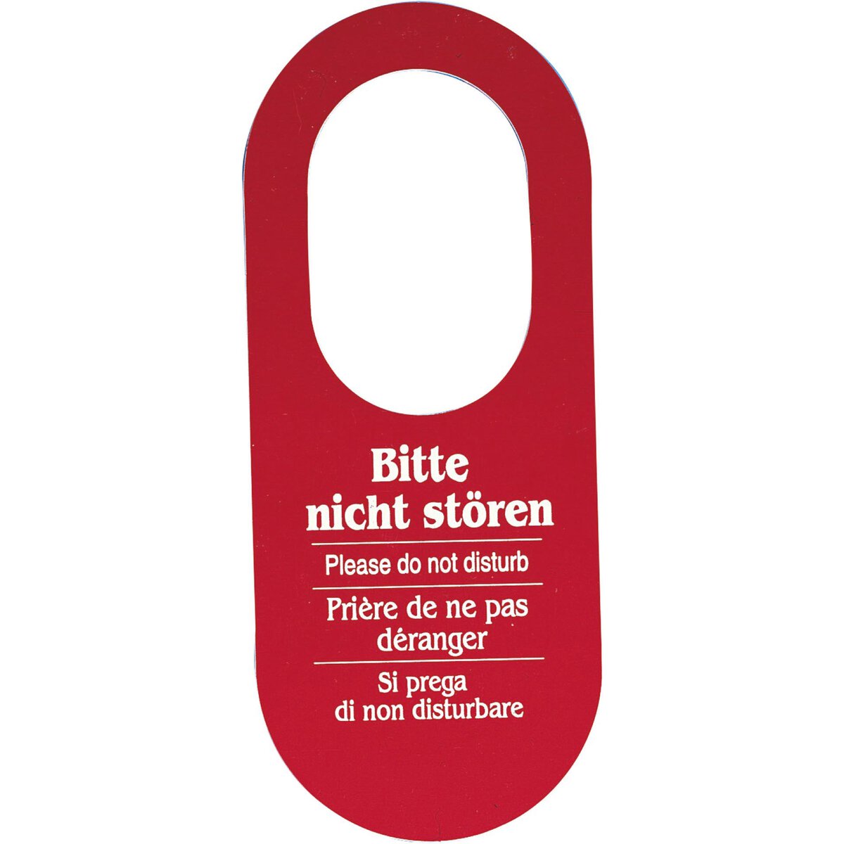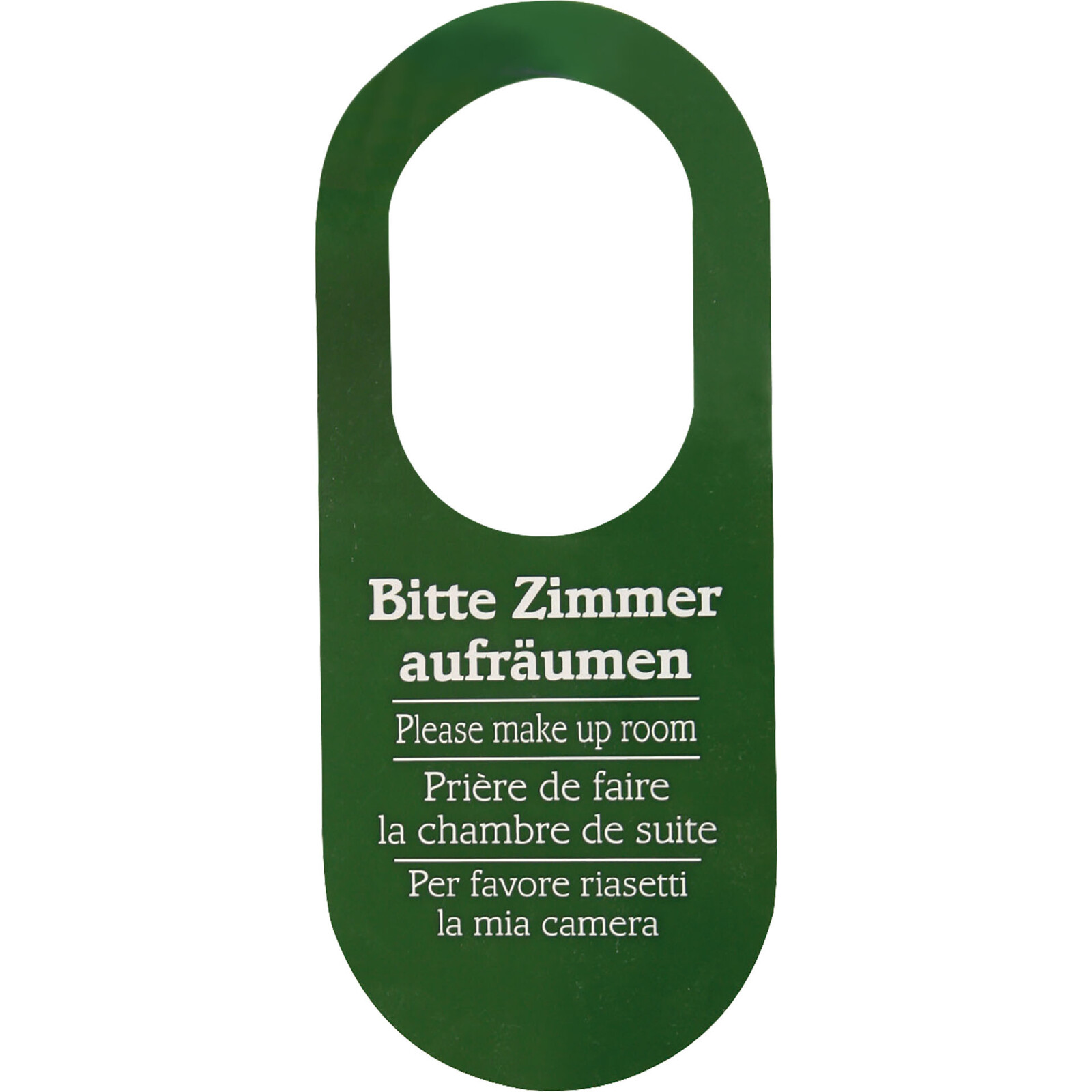 Kunststoff, reißfest. Beidseitig bedruckt mit: “Bitte Zimmer aufräumen” (grün), "Bitte nicht stören" (rot). In 4 Sprachen (Deutsch, Englisch, Französisch und Italienisch). Im 10er Pack.