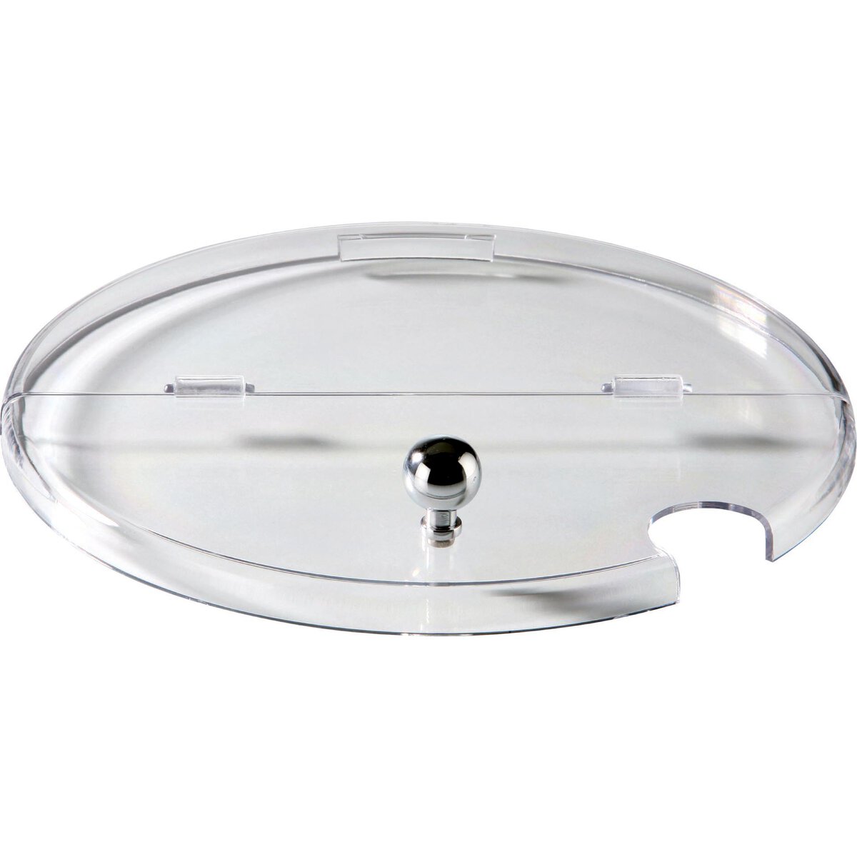 Acryl, klar, aufklappbar, mit Edelstahlknopf und Löffelaussparung.