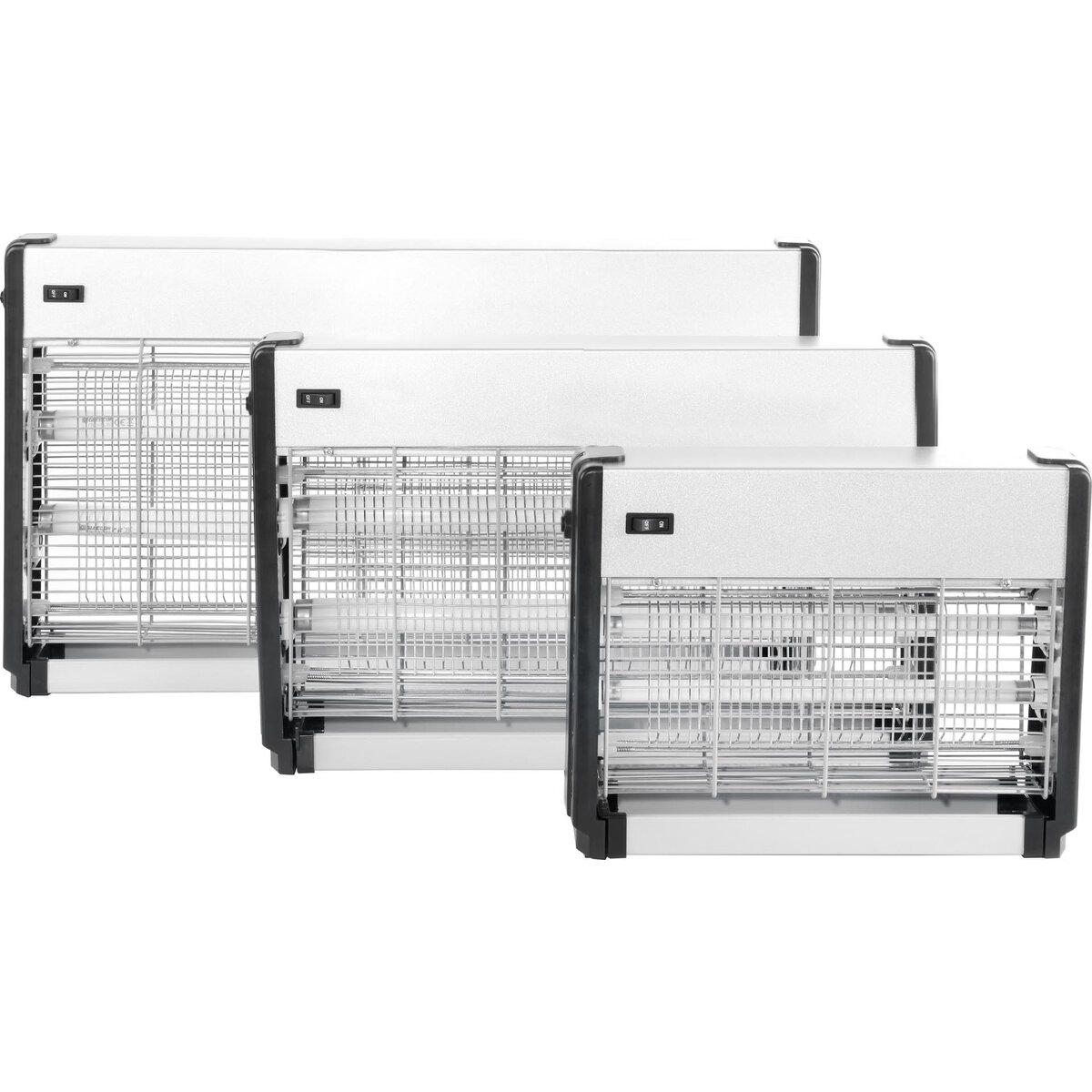Elektronischer Insektenvernichter mit einem Gehäuse aus einer speziellen Aluminiumlegierung und feuerfestem ABS-Kunststoff. Einfache Reinigung durch herausnehmbare Schublade. 2 UV-A-Leuchtstoffröhren. Gitterspannung 2500 V. Anschlusswert 230 V. Als Decken- oder Standgerät einsetzbar. Nur zur Verwendung im Innenbereich.