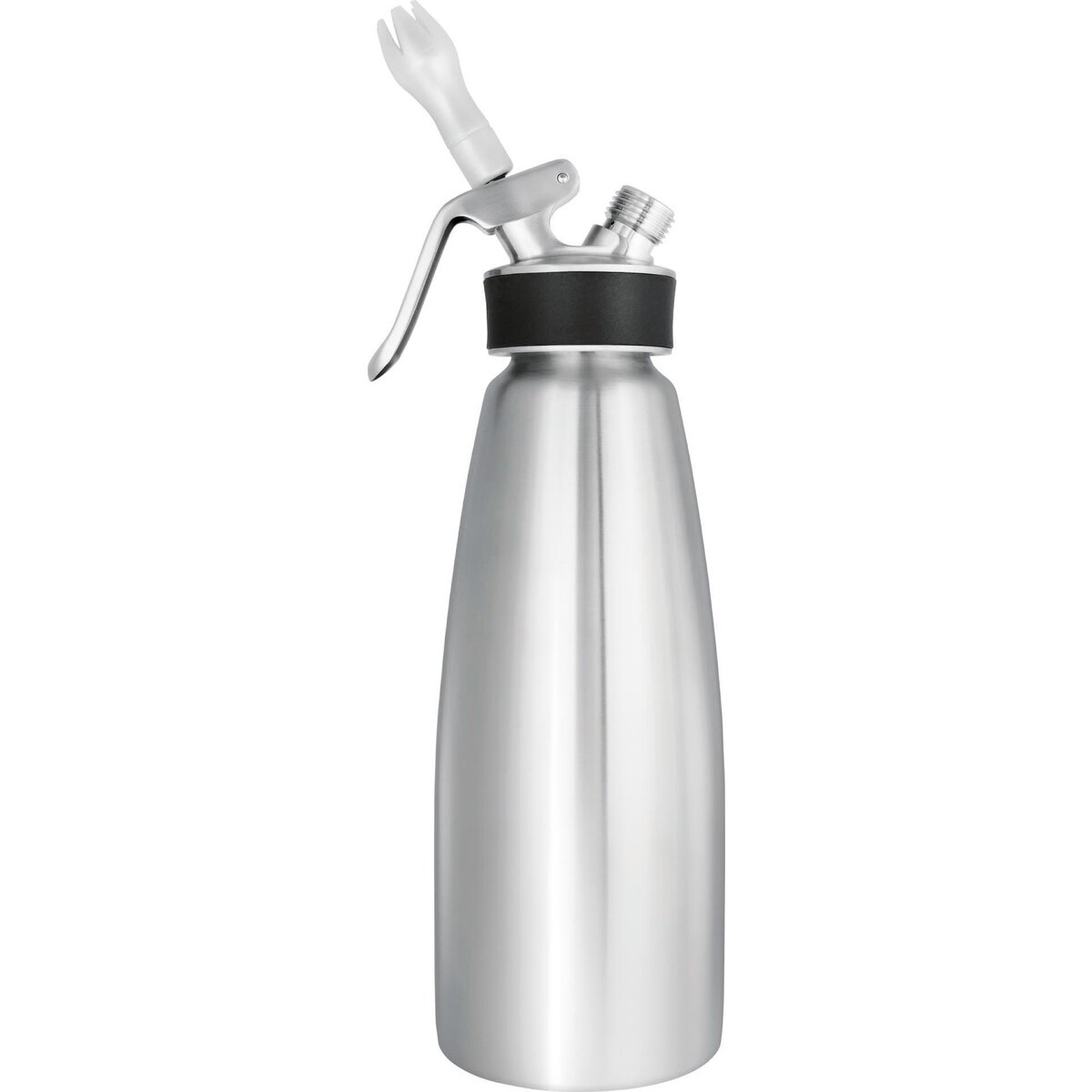 Edelstahl. Kalte Anwendung. Das professionelle Sahnegerät für Kaffeehausketten, Eissalons, Konditoreien, etc. Incl. 2 Tüllen. Spülmaschinengeeignet. Gerätekopf mit schwarzem Silikon-Griffschutz und entnehmbarem Edelstahlkolben zur einfachen Reinigung.
