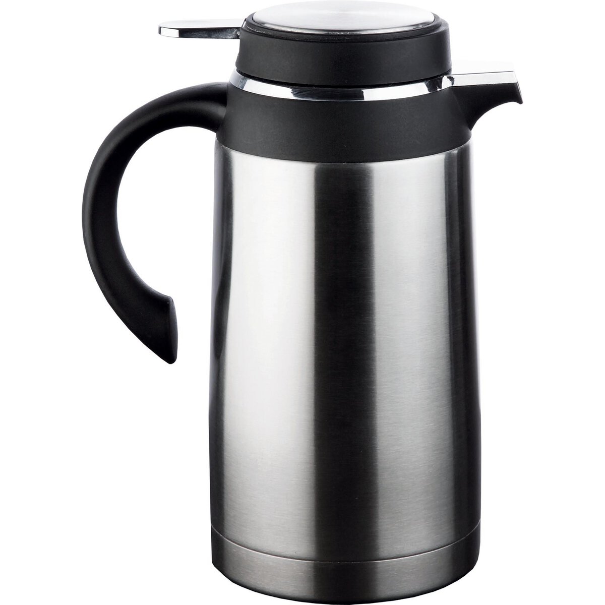 Edelstahl, satiniert. Unzerbrechlicher Edelstahleinsatz, doppelwandig isoliert. Einhandbedienung, funktionell, praktisch und schönes Design. Farbe/Deckel: schwarz/Edelstahl satiniert. Nicht spülmaschinengeeignet.