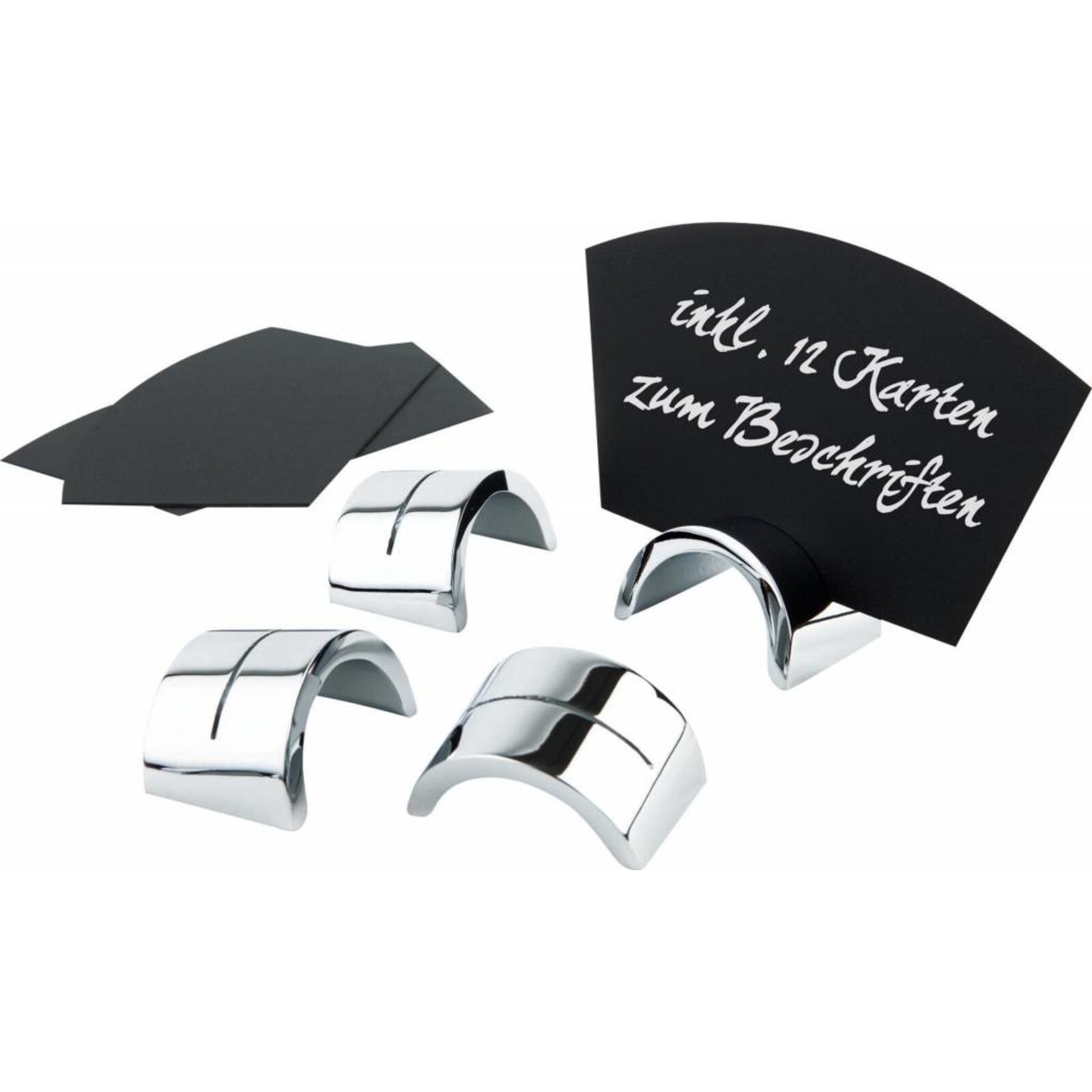 Metall, hartverchromt. 18tlg.-Set , bestehend aus 6 Kartenhaltern und 12 Kunststoff-Kärtchen 10,0x7,5 cm zum Beschriften.