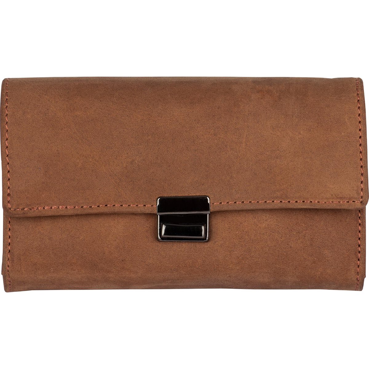 Büffelleder, braun. Kellnerbörse inkl. Schlüsselkette mit Karabiner, bestehend aus: 1x Münzfach, 6x Scheinfach, 1x Reißverschlussfach, 1x Steckfach an der Rückseite. Revolvertasche bestehend aus 1x Fach für die Kellnerbörse und 1x Zusatzfach für Notizblock und Kugelschreiber.