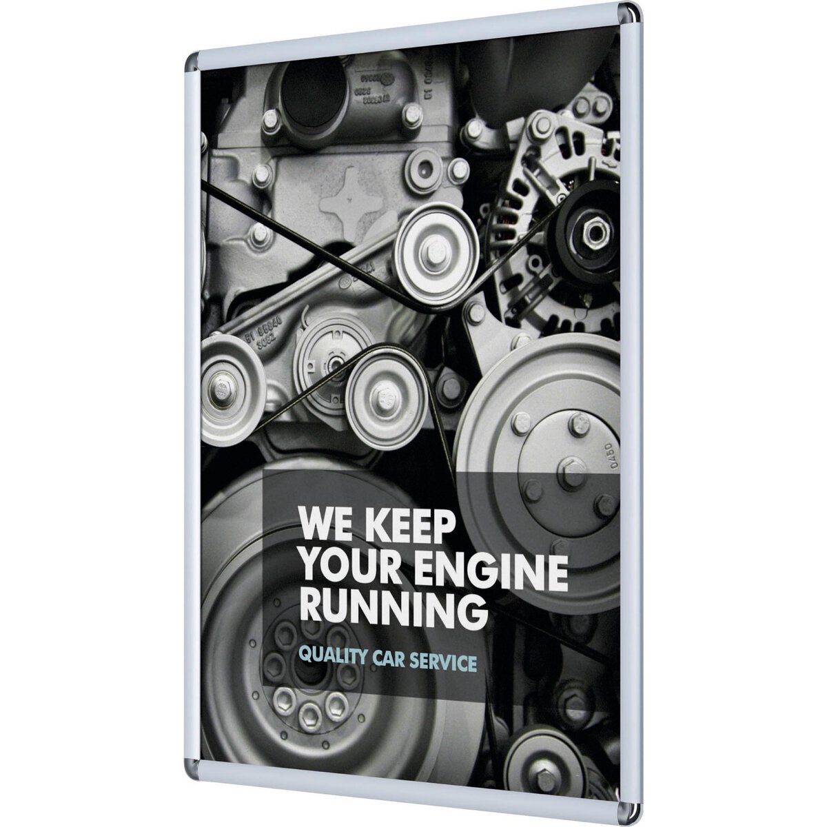 - Außenrahmen einfach aufklappen, Plakat und Klarsichtabdeckfolie einlegen, zuklappen - fertig!