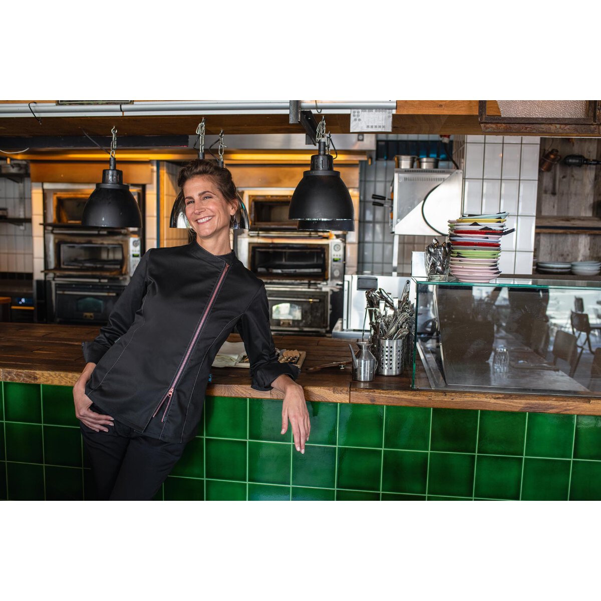 "Cuisine Premium". 49% Baumwolle, 49% Polyester, 2% Elastolefin, 200 g/m²,