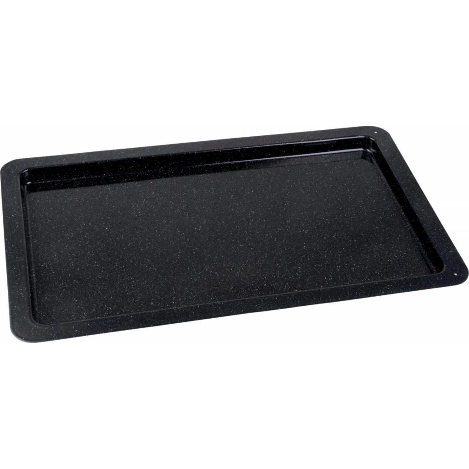 Emaille. Schnittfeste emaillierte Oberfläche, schwarz gesprenkelt, in Profi-Qualität, extra stark 0,75 mm, bis +400°C hitzebeständig, Gas-/ Holzkohlegrillgeeignet, mit abgerundeten Ecken, spülmaschinengeeignet.