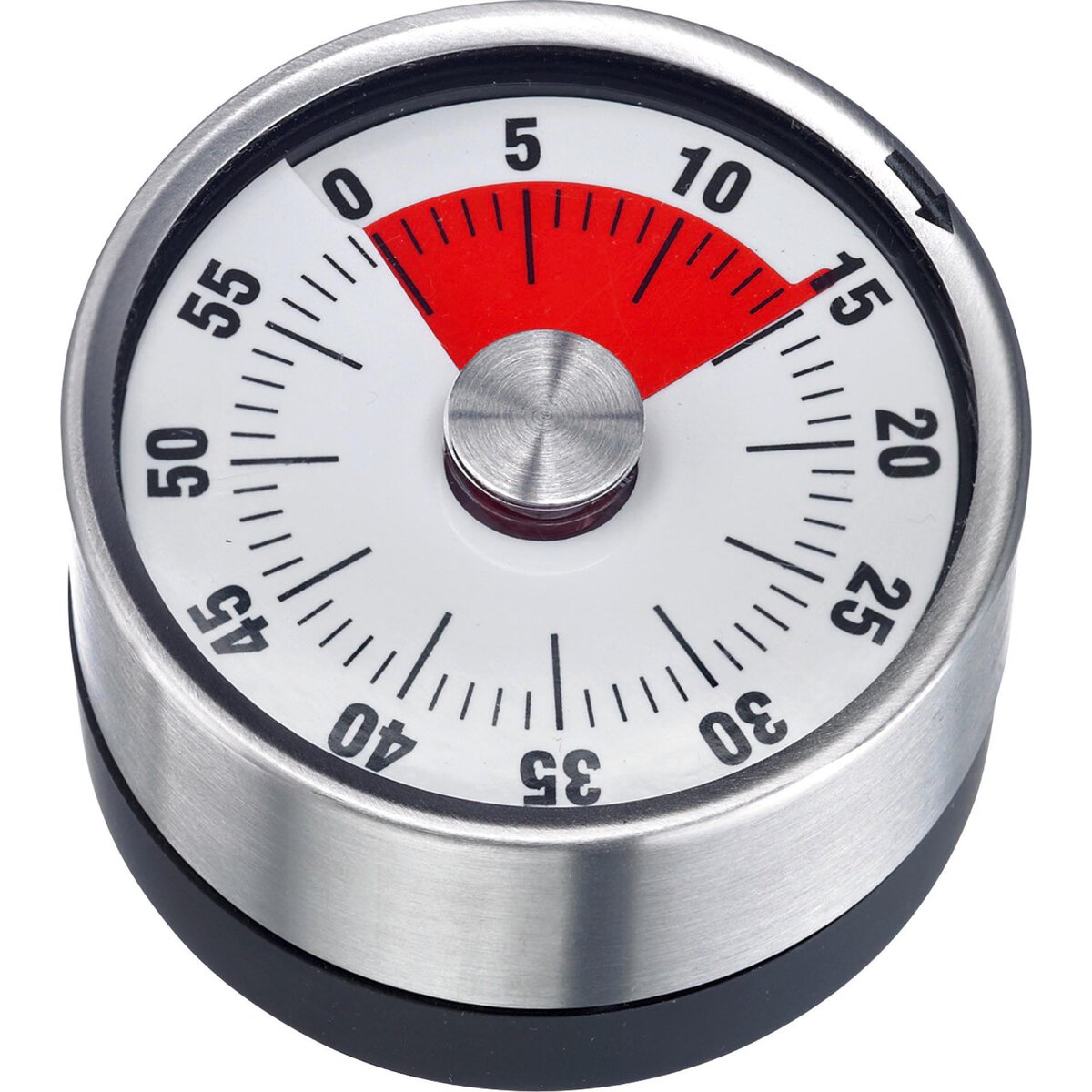 Edelstahl, ABS. Mit Magnet-Rückseite, gummiert. Einstellmöglichkeit bis 60 Minuten.