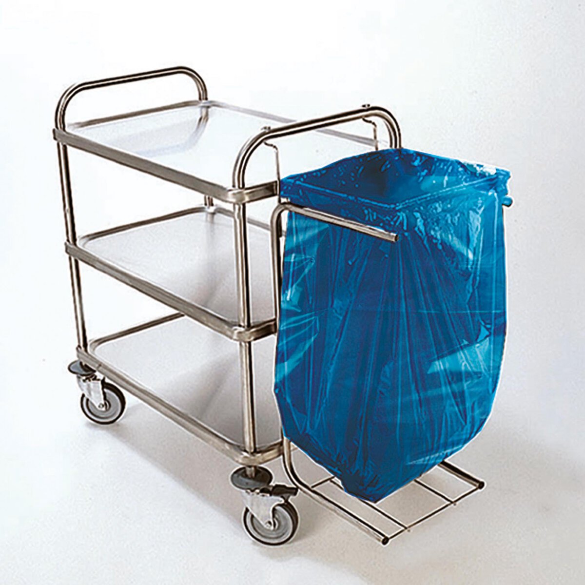 Für Servierwagen. Edelstahl 18/10. Für 110 Liter Müllbeutel. Die Halterung kann am Griff eingehängt werden. Lieferung ohne Müllbeutel.