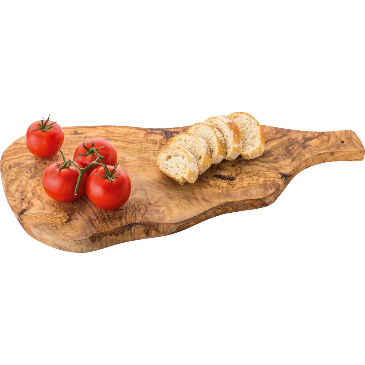 Olivenholz. Griff ca. 9x6 cm. Mit Olivenöl eingelassen. Durch Dichte und Härte des Holzes für den täglichen Gebrauch schnittunempfindlich, jedes Exemplar ein Unikat. Maße ca.
