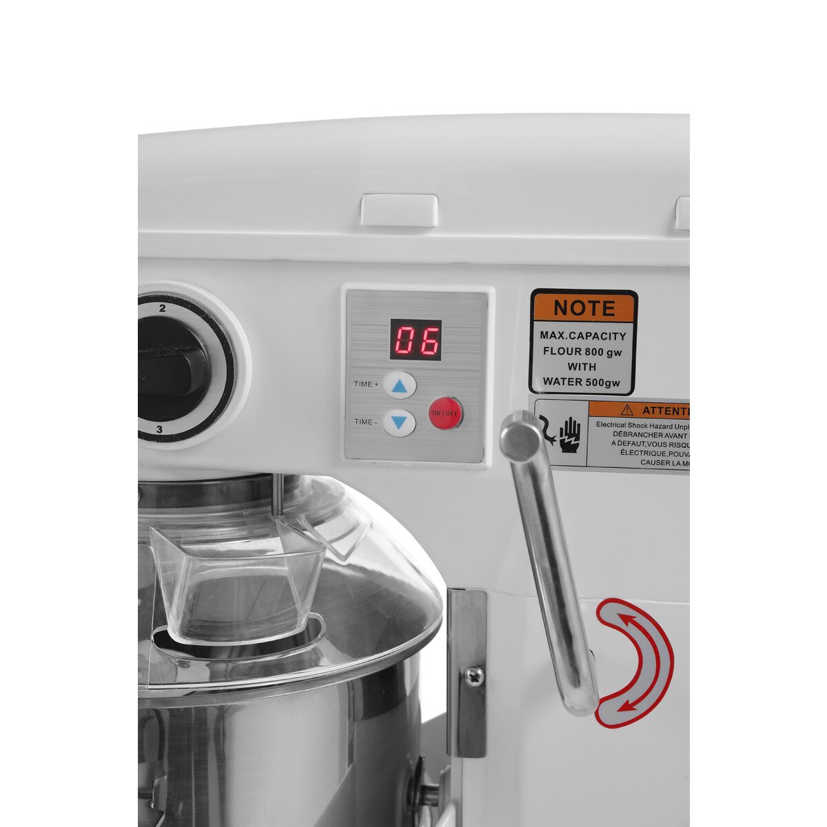 Hochwertiges Gehäuse aus Gussstahl, Spritzgussdeckel und Schüsselabdeckung aus Kunststoff. Hochleistungsschneckenantrieb und -zahnräder. Mehrere eingebaute Sicherheitsabschalter sorgen für höchste Sicherheit und bestmöglichen Überlastschutz. Inklusive Schüssel, Schläger, Schneebesen und Teighaken aus Edelstahl. Übersichtliches digitales Bedienfeld. Mit kippbarem Mischkopf zur einfachen Reinigung. Automatische Abschaltung, wenn der Kopf oder die Schüsselabdeckung angehoben wird. 3 einstellbare Geschwindigkeiten: 128/ 252/ 545 Umdrehungen pro Minute. Volumen: 7 Liter, Spannung: 230V, Leistung: 650W.