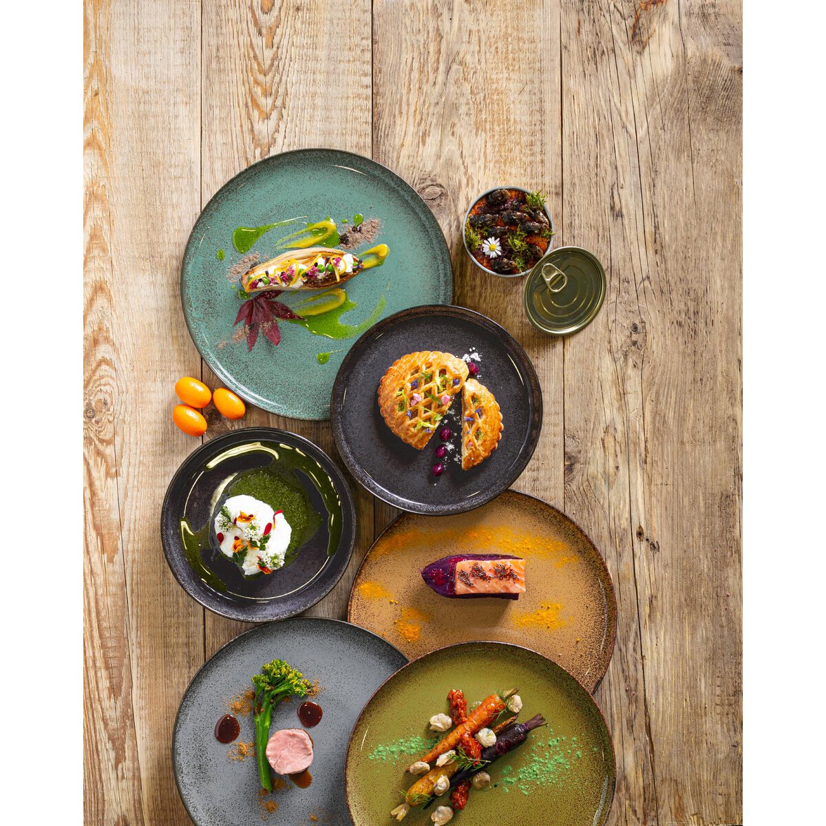 Robustes Porzellan in gesprenkelten Ockertönen und einer glänzenden Glasur. Außenglasur mattschwarz. Bedingt durch die Produktionsart ergeben sich äußerst geringe Farbschwankungen. Durch die moderne Form mit allen anderen vier Farbvarianten optimal kombinierbar.