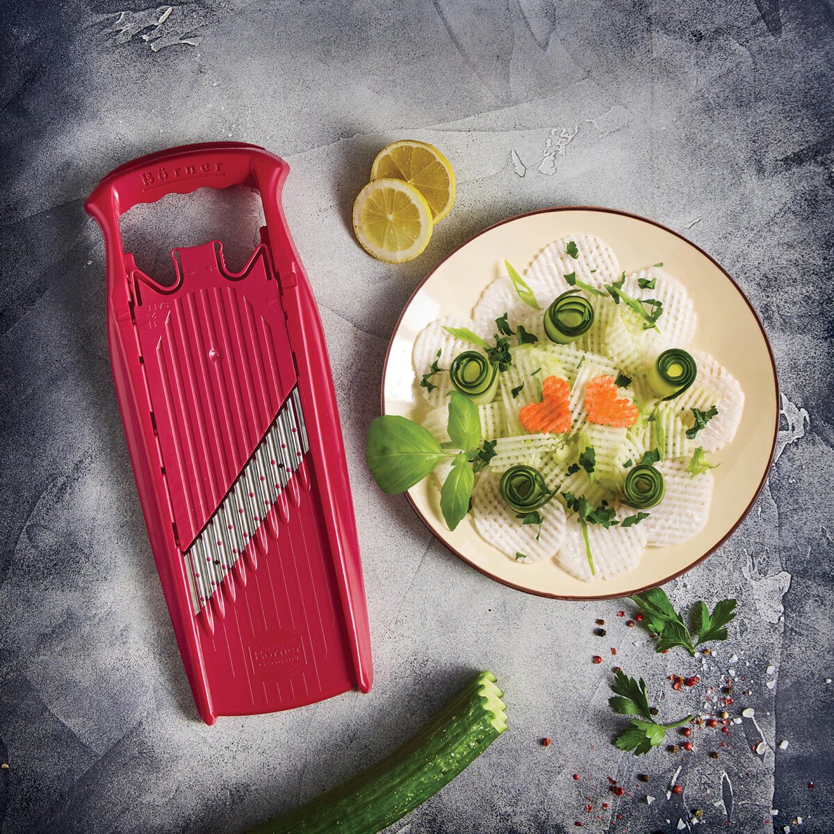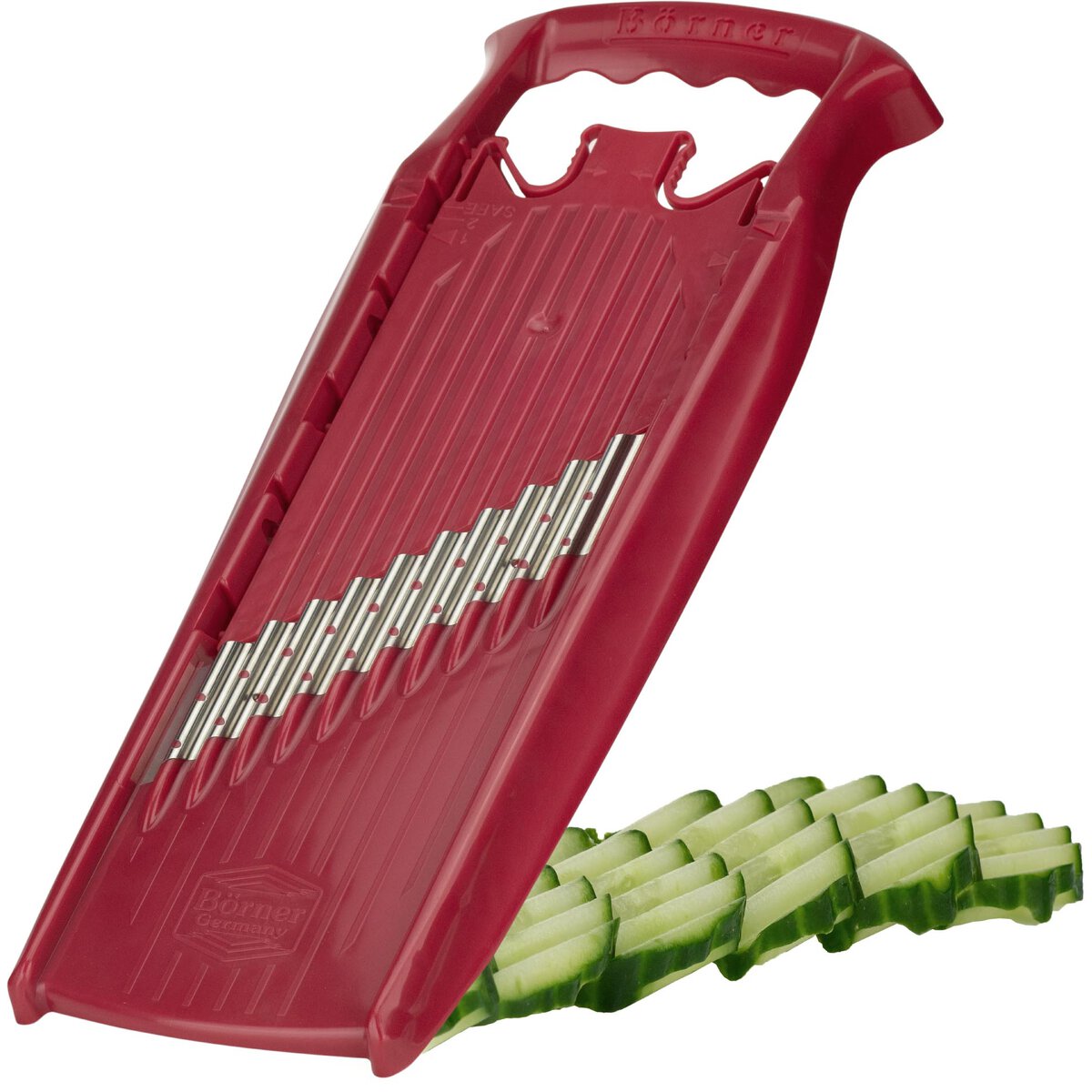 Schneidet Gemüse in wellenform. Zum sicheren Halt bitte Art. 14724 Multimaker verwenden.