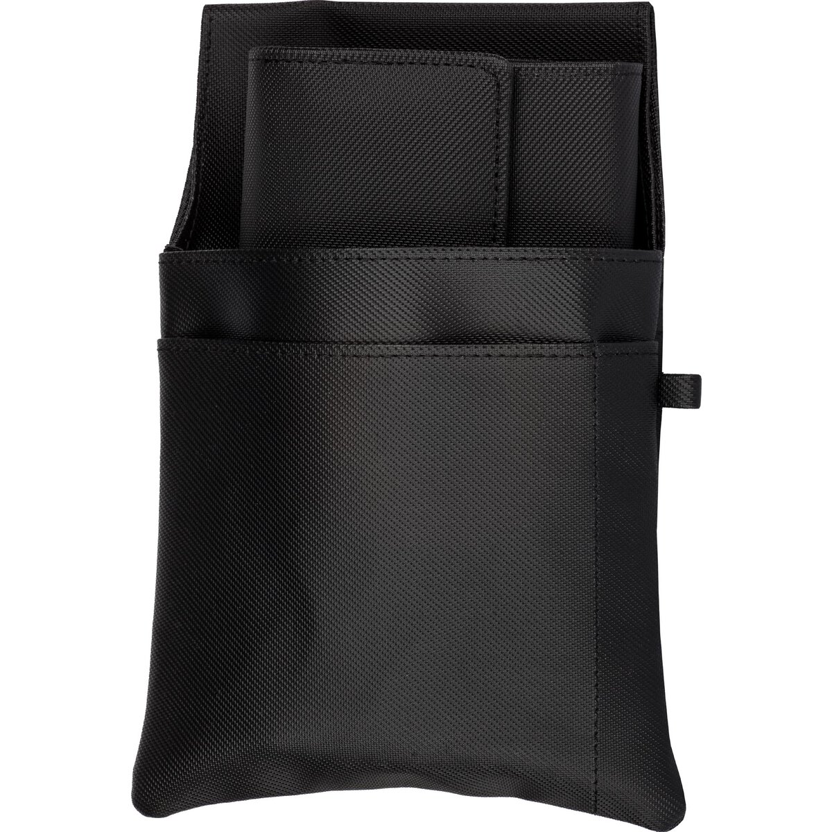 Nylon. Bestehend aus 1 Fach für Kellnerbörse und 1 Zusatzfach für Notizblock und Stift. Ohne Öse.